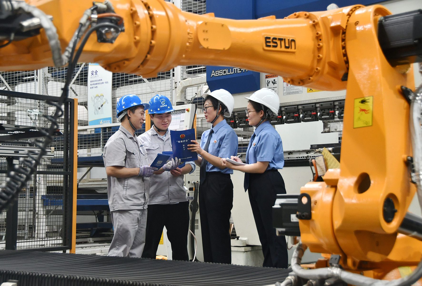 為深入落實“檢察護企”專項行動, 6月6日,河北省邯鄲市永年區(qū)人民檢察院開展“法治宣傳進企業(yè)”活動,組織檢察官成立普法小分隊深入轄區(qū)企業(yè),向員工普及法律知識、解答法律咨詢,進一步增強他們的法律意識。