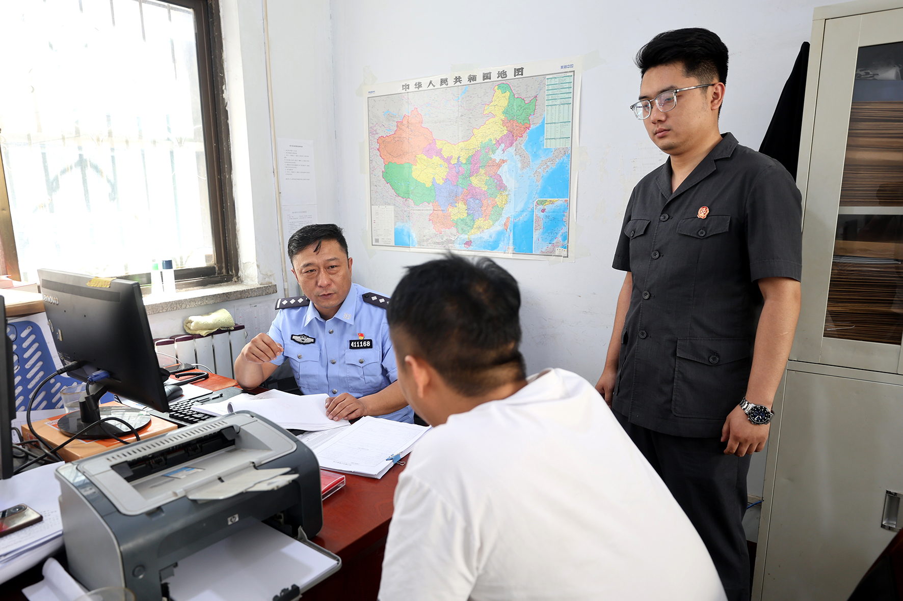 圖②:執(zhí)行干警做被執(zhí)行人思想工作。