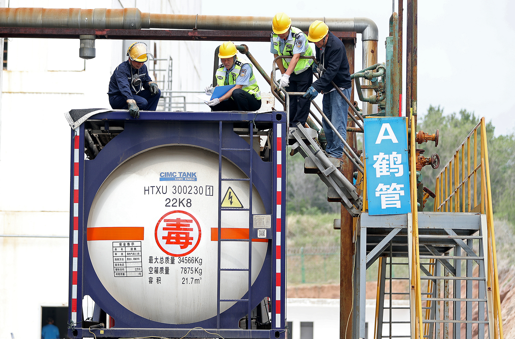 6月13日,湖北省荊門市交警支隊(duì)民警在?;愤\(yùn)輸企業(yè),實(shí)地抽查車輛警示標(biāo)識(shí)標(biāo)志等安全設(shè)施,排查?;愤\(yùn)輸車輛安全隱患。
