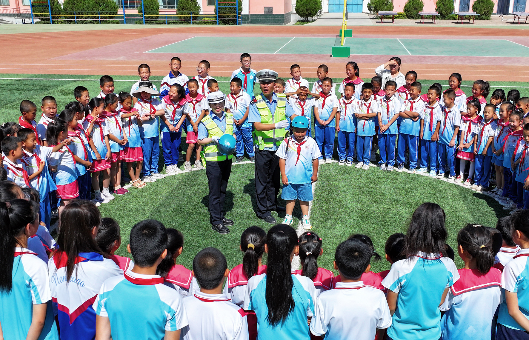 7月2日,甘肅省臨澤縣公安局交警大隊(duì)民警走進(jìn)新華農(nóng)場(chǎng)小學(xué),通過(guò)現(xiàn)場(chǎng)授課、體驗(yàn)VR眼鏡、學(xué)做交通手勢(shì)、認(rèn)識(shí)交通指示牌等寓教于樂(lè)的方式向?qū)W生們普及交通安全知識(shí)。