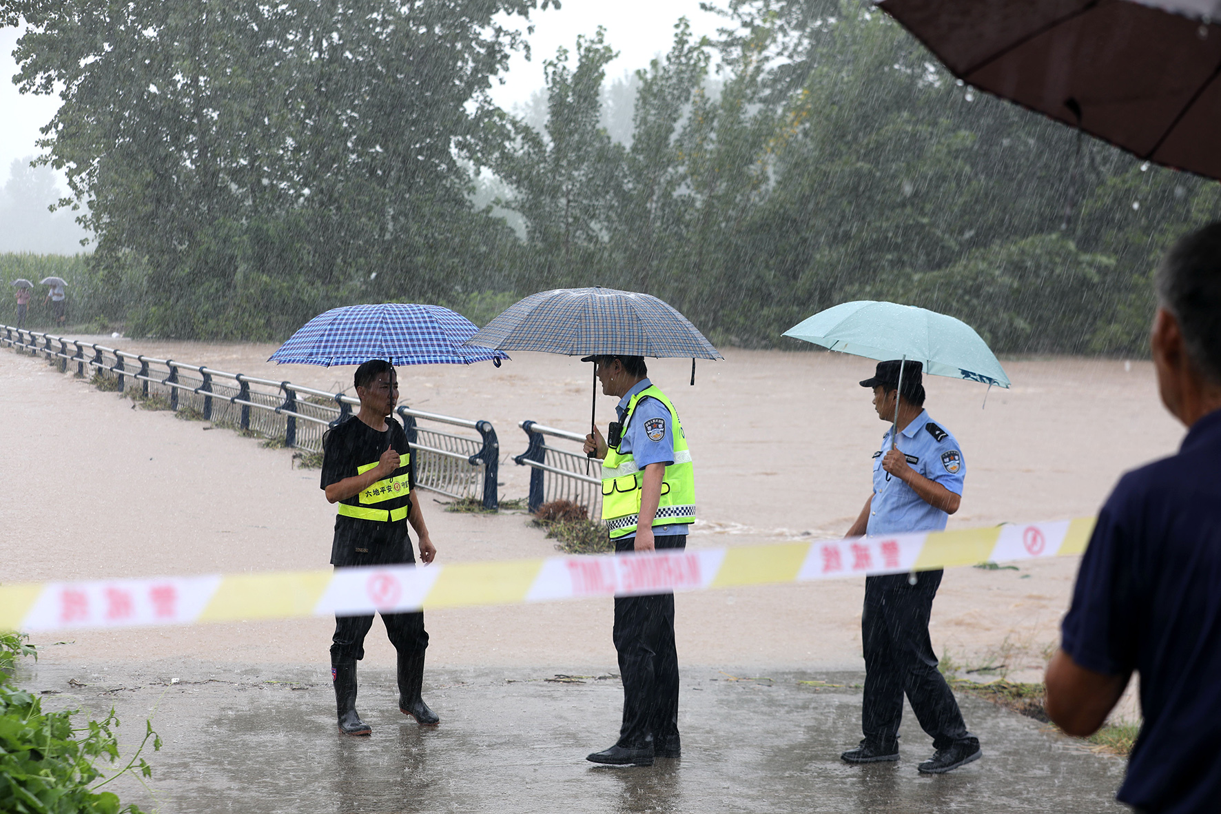 7月11日,安徽省舒城縣張母橋鎮(zhèn)部分路段出現(xiàn)橋梁被淹、路面積水情況。舒城縣公安局張母橋派出所聞“汛”而動(dòng),全力以赴踏查隱患、設(shè)置提示標(biāo)志、安排人員值守,用實(shí)際行動(dòng)守護(hù)人民群眾的生命財(cái)產(chǎn)安全。