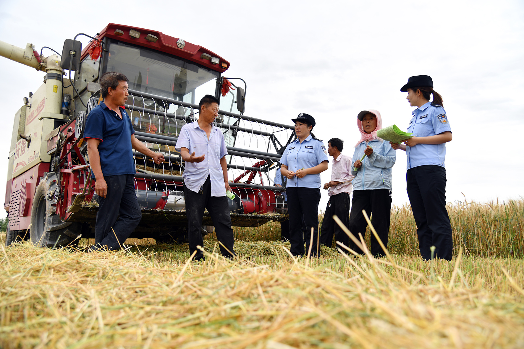 7月12日,甘肅省臨澤縣公安局森林警察大隊民警輔警深入田間地頭走訪,了解小麥長勢及銷量情況,幫助麥收村民解決遇到的困難與問題。