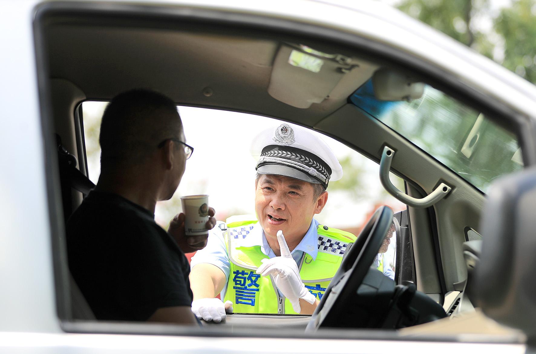 連日來(lái),湖北荊門(mén)持續(xù)晴熱高溫。荊門(mén)市公安局交警支隊(duì)屈家?guī)X大隊(duì)在省道以及農(nóng)村重點(diǎn)路段,開(kāi)展“送‘平安涼茶’、護(hù)‘一路平安’”夏季交通安全宣傳活動(dòng)。