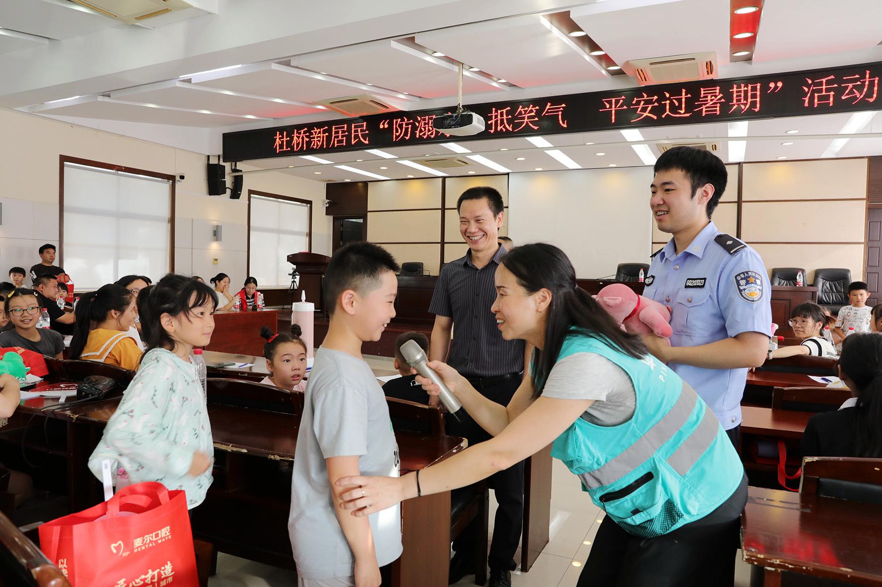 8月5日,浙江省臨海市公安局杜橋派出所會同新居民聯(lián)誼會和杜街網(wǎng)格員,在鎮(zhèn)第二會堂開展“防溺水、抵笑氣、平安過暑期”活動。
