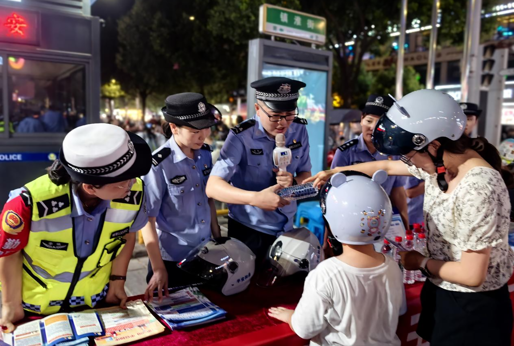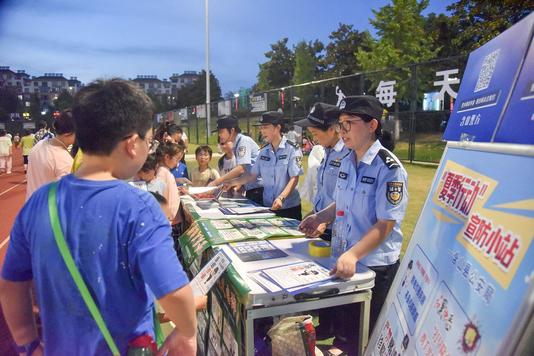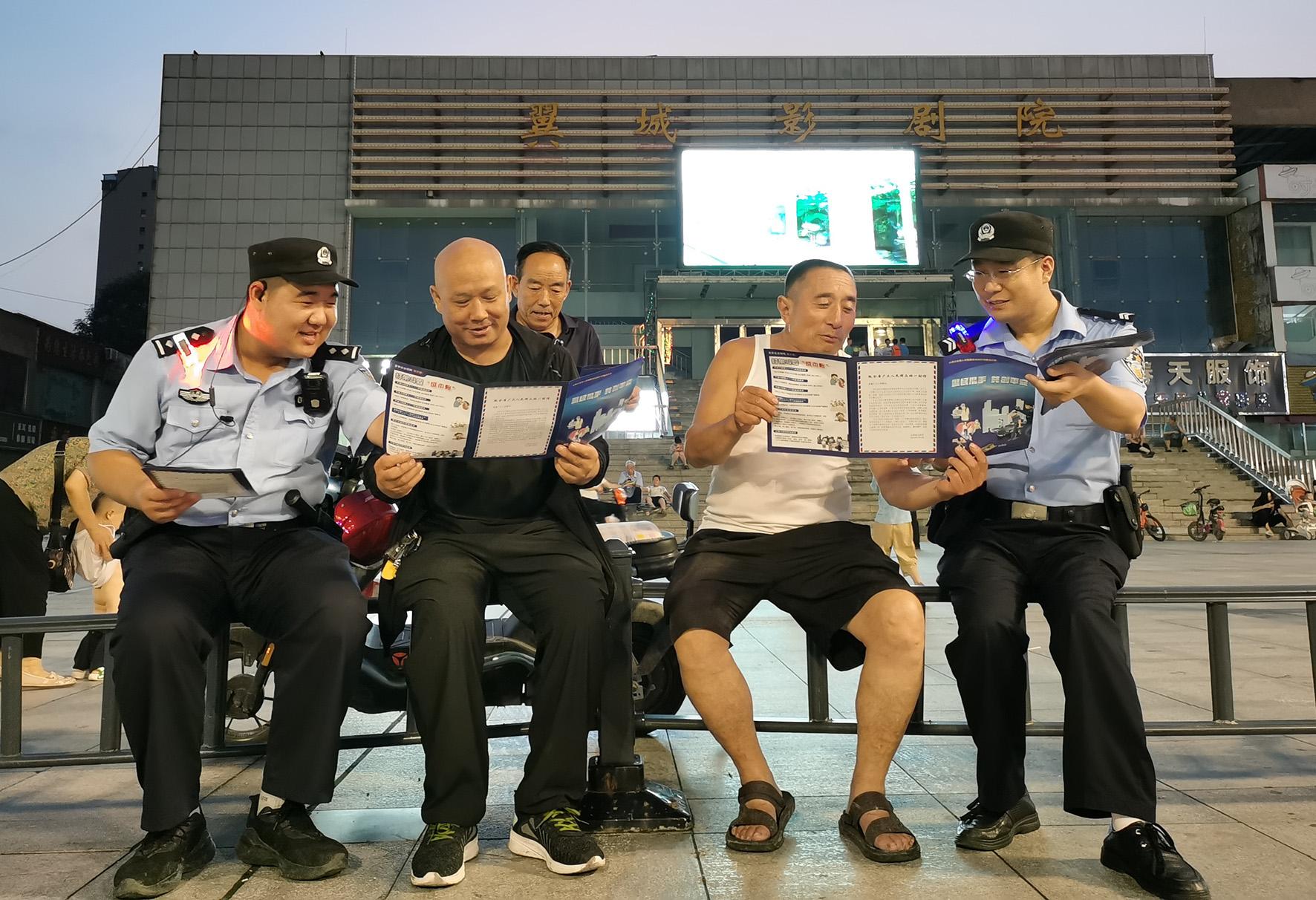 8月10日晚,河南省??h公安局結(jié)合夏夜治安巡查宣防集中統(tǒng)一行動,加大對轄區(qū)商圈、夜市、廣場等人員密集場所的檢查巡邏守護(hù)力度,向群眾宣傳反詐、禁毒、拒賭、防火防盜等安全防范知識。