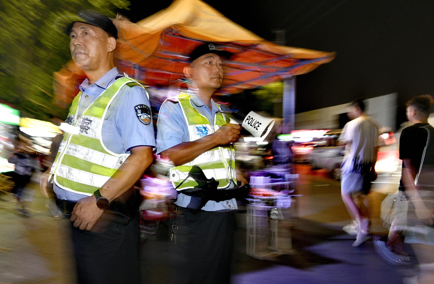 8月10日,河南省鄭州市公安局金水分局巡特警隊員在全市公安機(jī)關(guān)夏夜治安巡查宣防統(tǒng)一行動中,全力以赴恪盡職守,“當(dāng)好守夜人”。