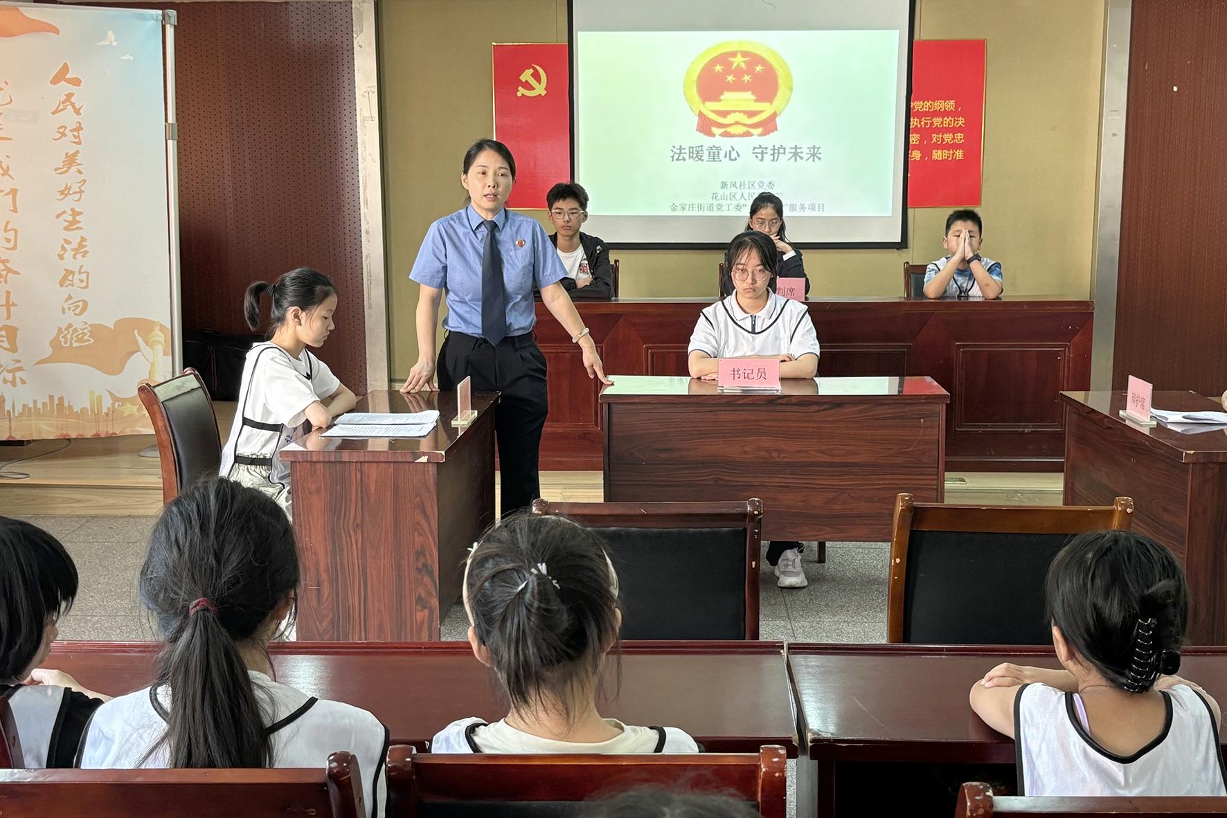 8月20日,安徽省馬鞍山市花山區(qū)金家莊街道聯(lián)合花山區(qū)人民檢察院走進(jìn)新風(fēng)社區(qū),開展“法暖童心 守護(hù)未來”模擬法庭普法實(shí)踐活動(dòng)。