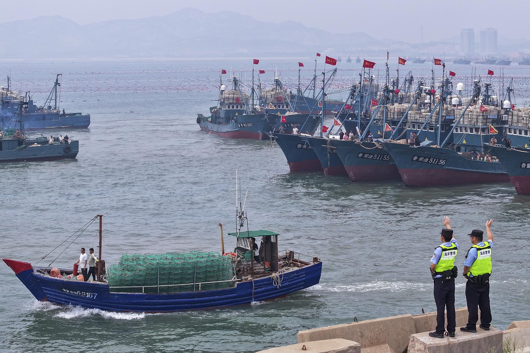 9月1日12時(shí),我國黃渤海海域結(jié)束伏季休漁,山東半島地區(qū)漁船民喜迎開海。威海市公安局海岸警察支隊(duì)組織海岸民警加強(qiáng)漁港碼頭巡邏守護(hù),協(xié)助漁政工作人員維護(hù)開海現(xiàn)場秩序,為廣大漁船民喜迎秋捕豐收提供安全保障。