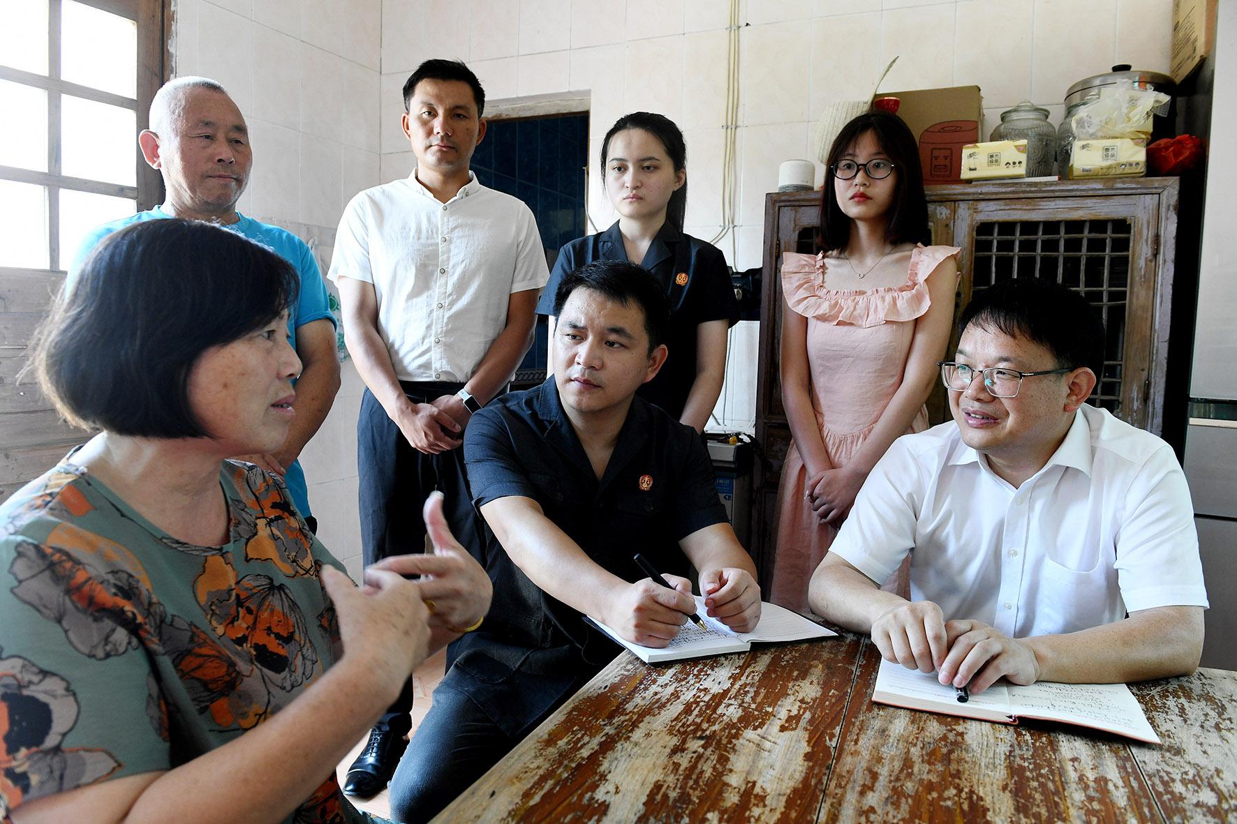 圖為9月1日,信訪干部在張村鄉(xiāng)一民營企業(yè)生產(chǎn)車間現(xiàn)場接訪。