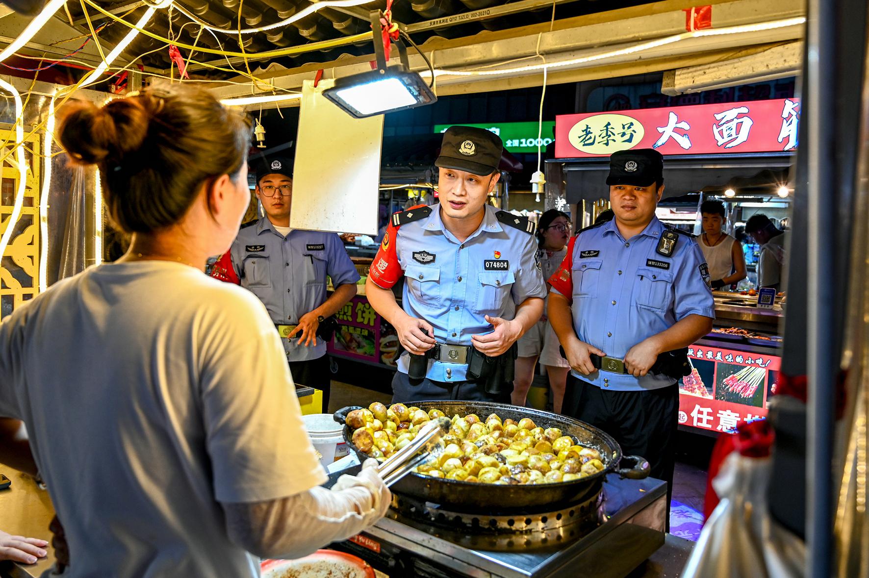 9月23日晚,安徽省馬鞍山市和縣公安局民警正在開(kāi)展夜間巡邏,向市民了解治安狀況,聽(tīng)取群眾對(duì)公安工作的意見(jiàn)和建議。今年以來(lái),該縣公安機(jī)關(guān)全面落實(shí)“見(jiàn)警力、見(jiàn)警車(chē)、見(jiàn)警燈”工作要求,對(duì)重點(diǎn)區(qū)域、重點(diǎn)時(shí)段開(kāi)展巡邏管控,全力提升群眾的安全感。