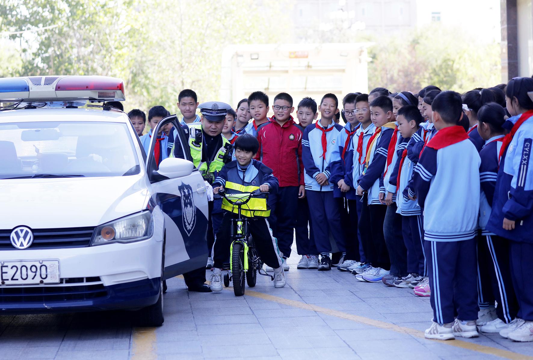 10月22日,陜西省渭南市公安局交警支隊臨渭大隊民警在渭南市道路交通安全宣傳教育基,地給貟張逸夫小學的學生們上了一堂別開生面的交通安全課。