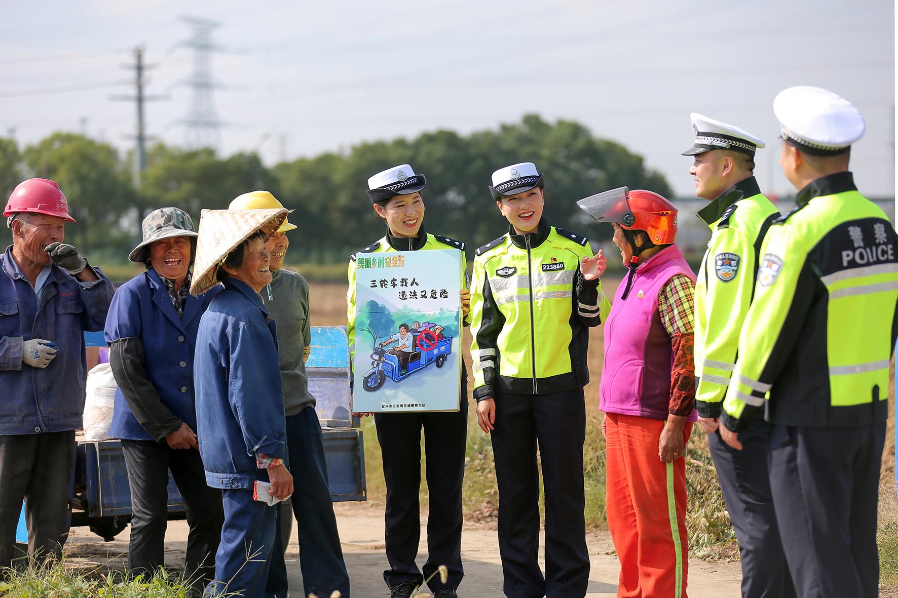 為進一步加強農忙時節(jié)鄉(xiāng)村道路交通安全,10月24日,江蘇省宜興市公安局交警大隊民警走進徐舍鎮(zhèn)美棲村開展道路交通安全宣傳活動。