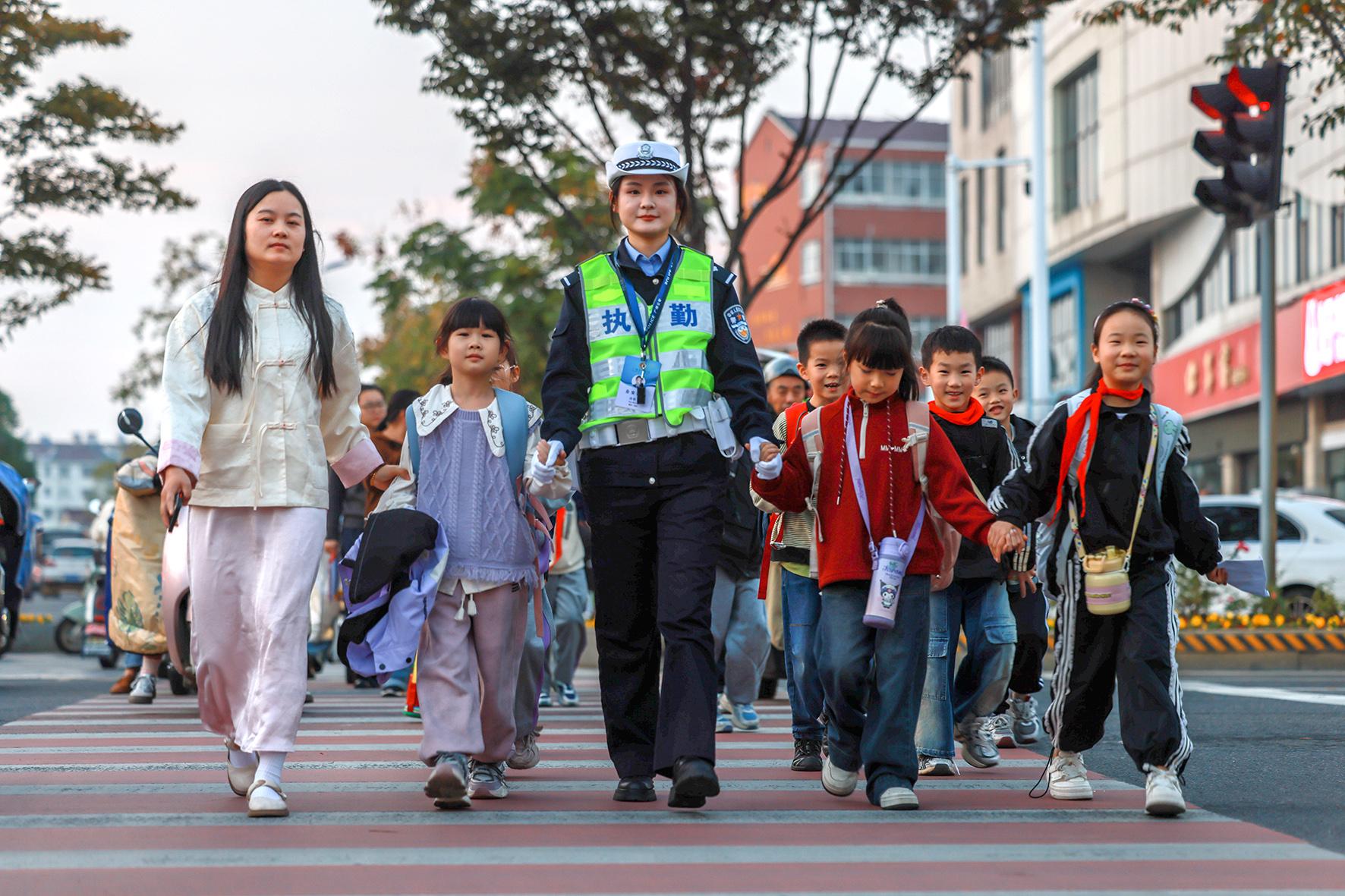 10月29日,安徽省廣德市公安局交警大隊(duì)民警在第四小學(xué)周邊開展護(hù)學(xué)工作。