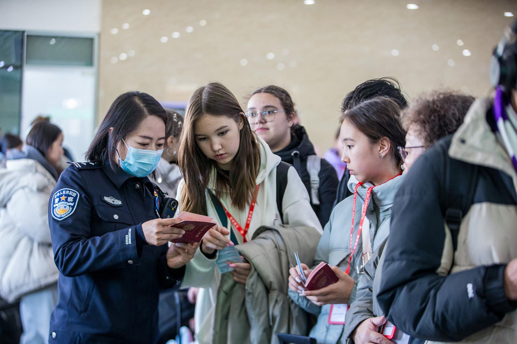 10月31日,由800名蒙俄青少年組成的研學(xué)團(tuán)從內(nèi)蒙古二連浩特公路口岸入境。內(nèi)蒙古出入境邊防檢查總站二連出入境邊防檢查站開通專用通道,為研學(xué)團(tuán)成員提供高效順暢的通關(guān)服務(wù)。