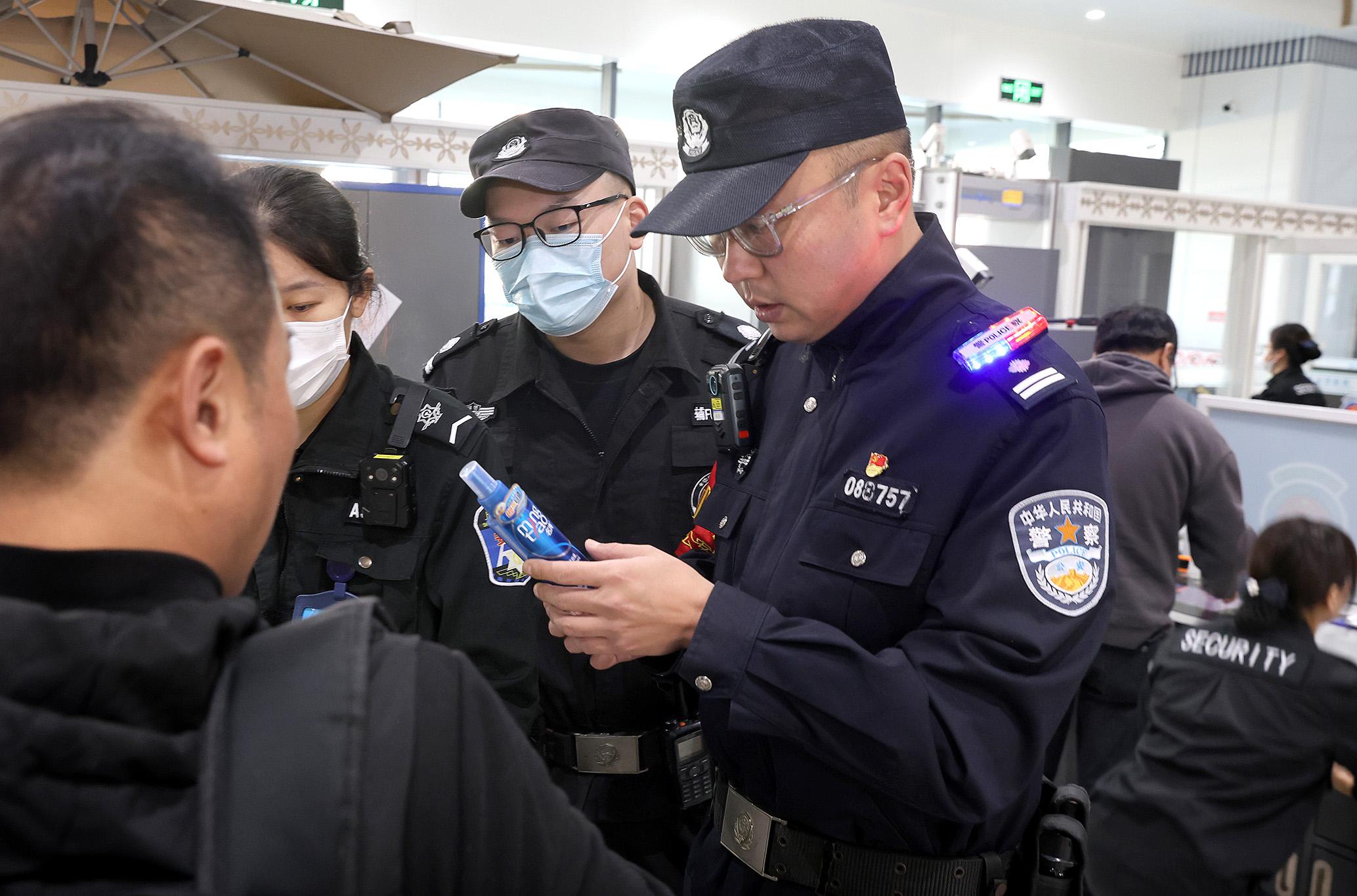 11月5日,南京鐵路公安處南通西站派出所民警在南通西站候車室治安檢查站檢查。為迎接第七屆中國國際進(jìn)口博覽會,南通西站派出所啟動南通西站治安檢查站,全面強(qiáng)化站區(qū)重點時段、重點部位的巡邏防控,切實筑牢入“滬”屏障。