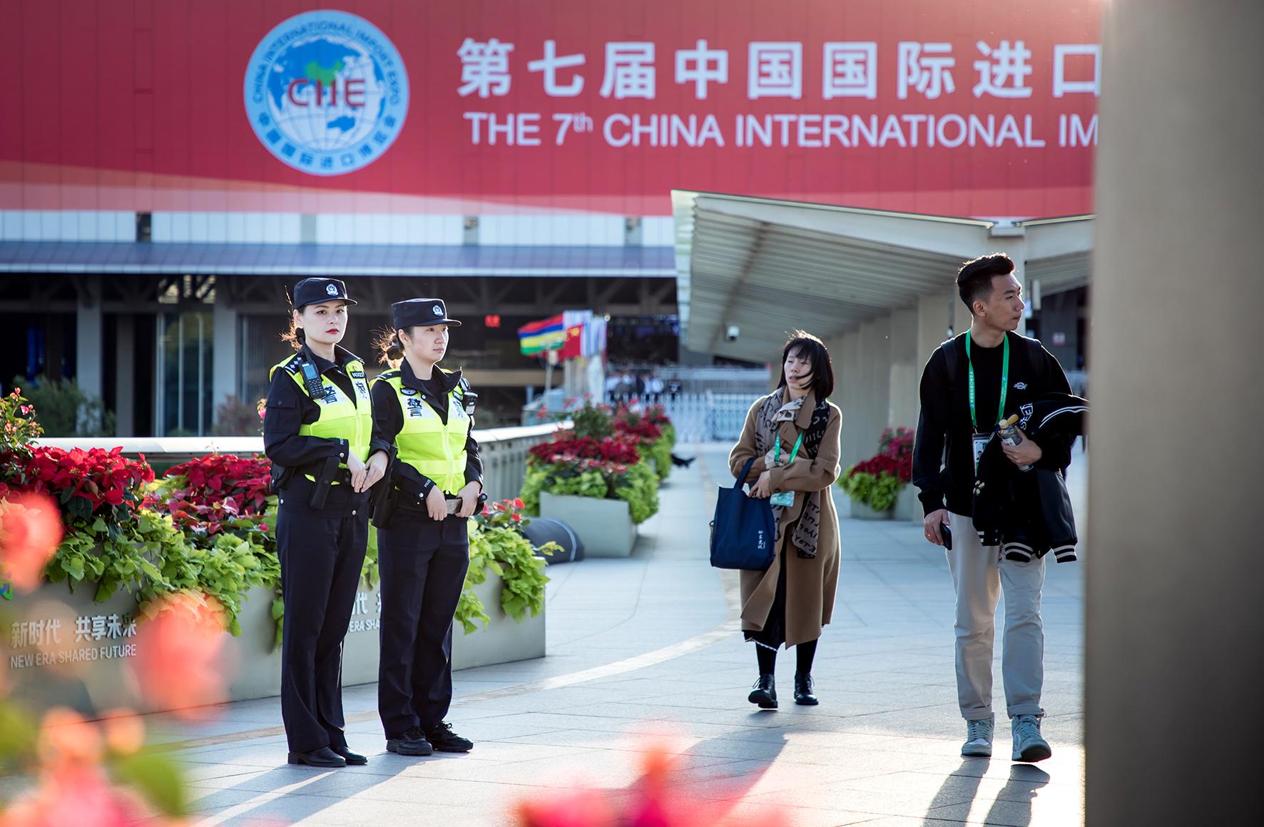11月5日,第七屆進博會在上海國家會展中心拉開帷幕。上海市公安局閔行分局啟動高等級勤務,全力保障“四葉草”場館周邊道路有序、水域安全。