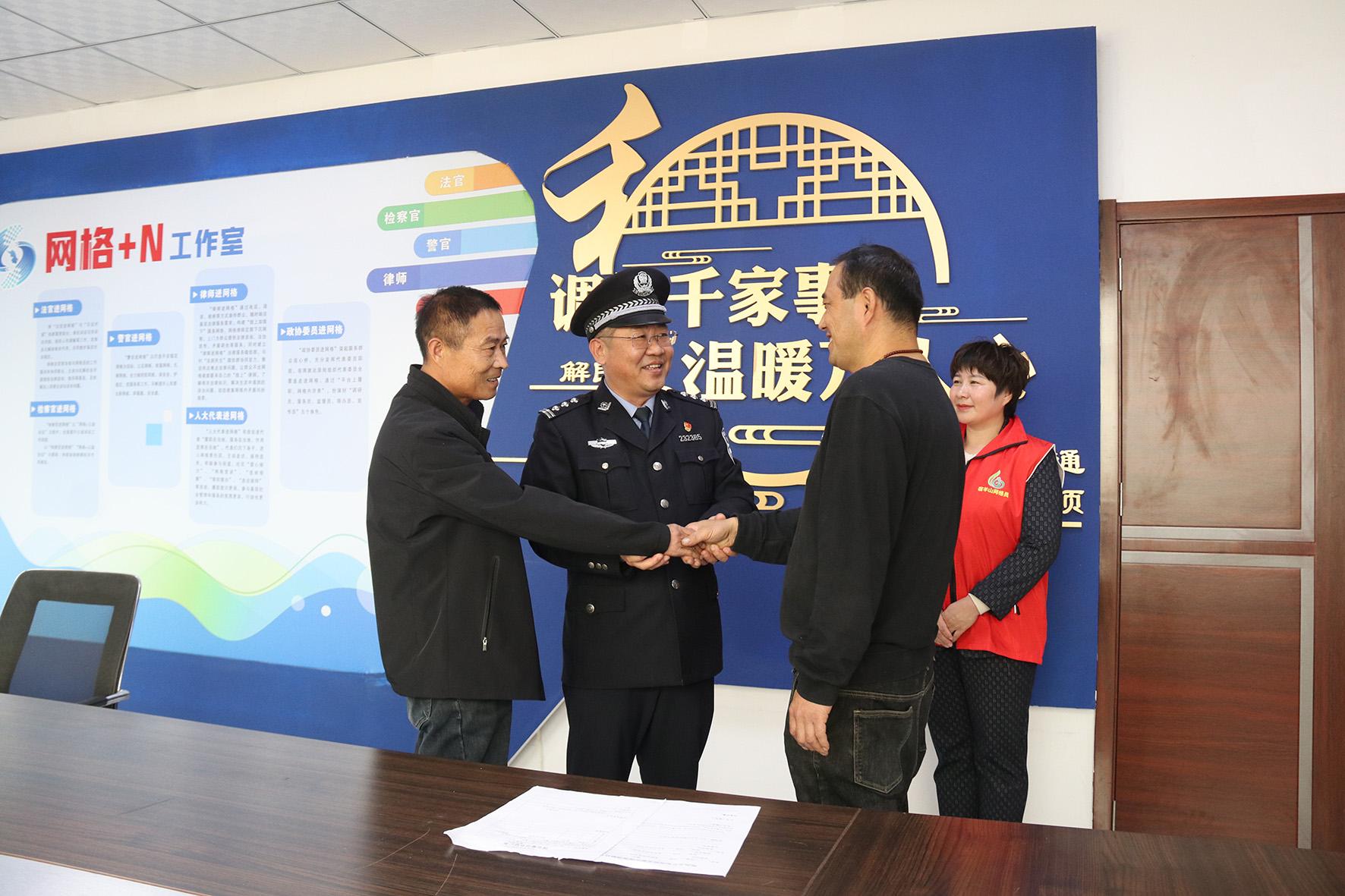 圖三:11月12日,民警調解一起糾紛,雙方握手言和。