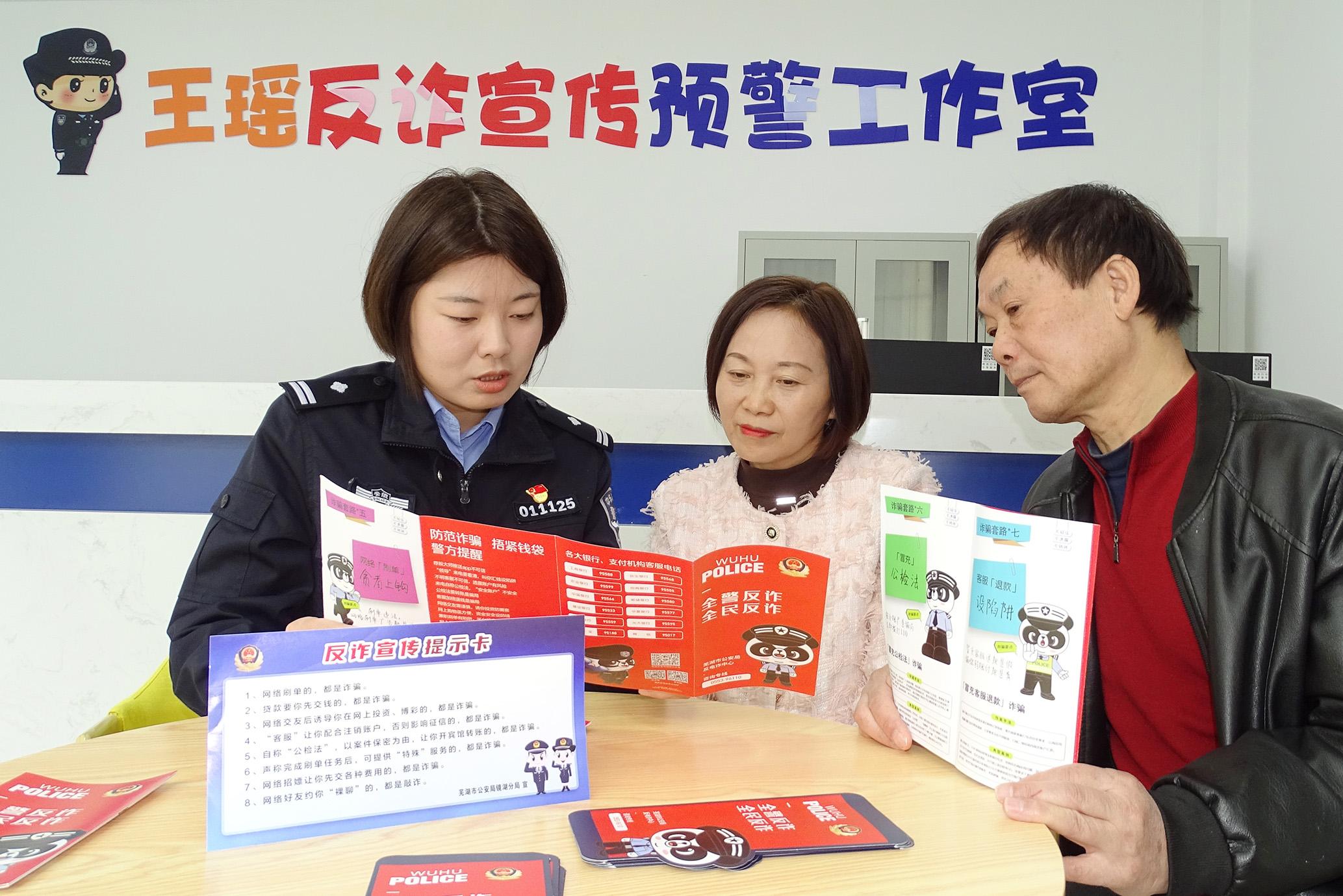 11月13日,安徽省蕪湖市公安局鏡湖分局弋磯山派出所以民警命名的“王瑤反詐宣傳預警工作室”正式運行。工作室采取請進來、走出去的方式,不定期地邀請群眾、學生到工作室接受到反電詐宣傳教育,并為到派出所辦事、遭遇疑似詐騙而求助的群眾答疑解惑。