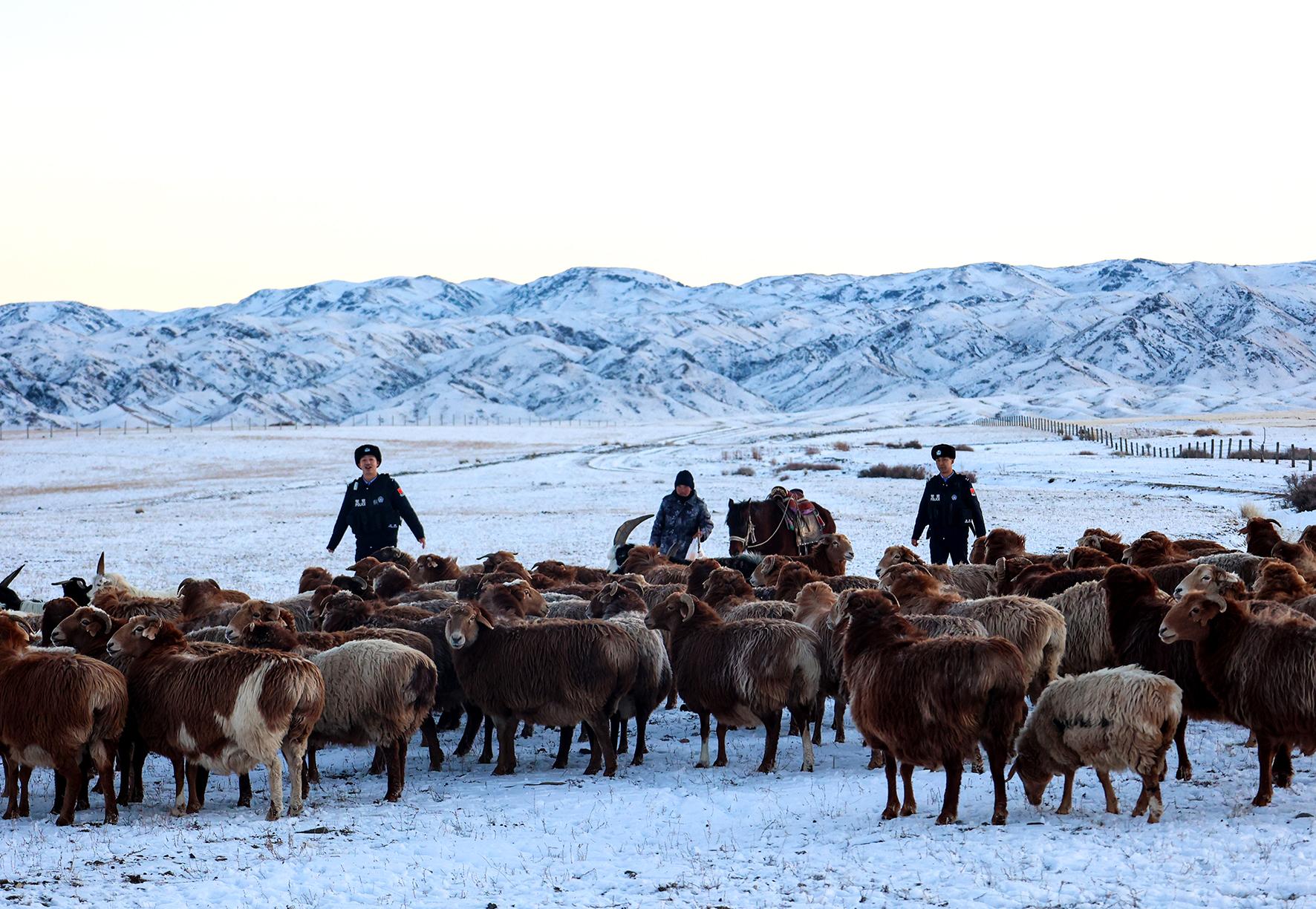11月20日,新疆出入境邊防檢查總站阿勒泰邊境管理支隊(duì)托普鐵熱克邊境派出所民警深入牧民定居點(diǎn),了解冬季轉(zhuǎn)場(chǎng)路線和時(shí)間,勘察沿途路段,為牧民提供食物、藥品等物資,全程護(hù)航牧民冬季轉(zhuǎn)場(chǎng)。