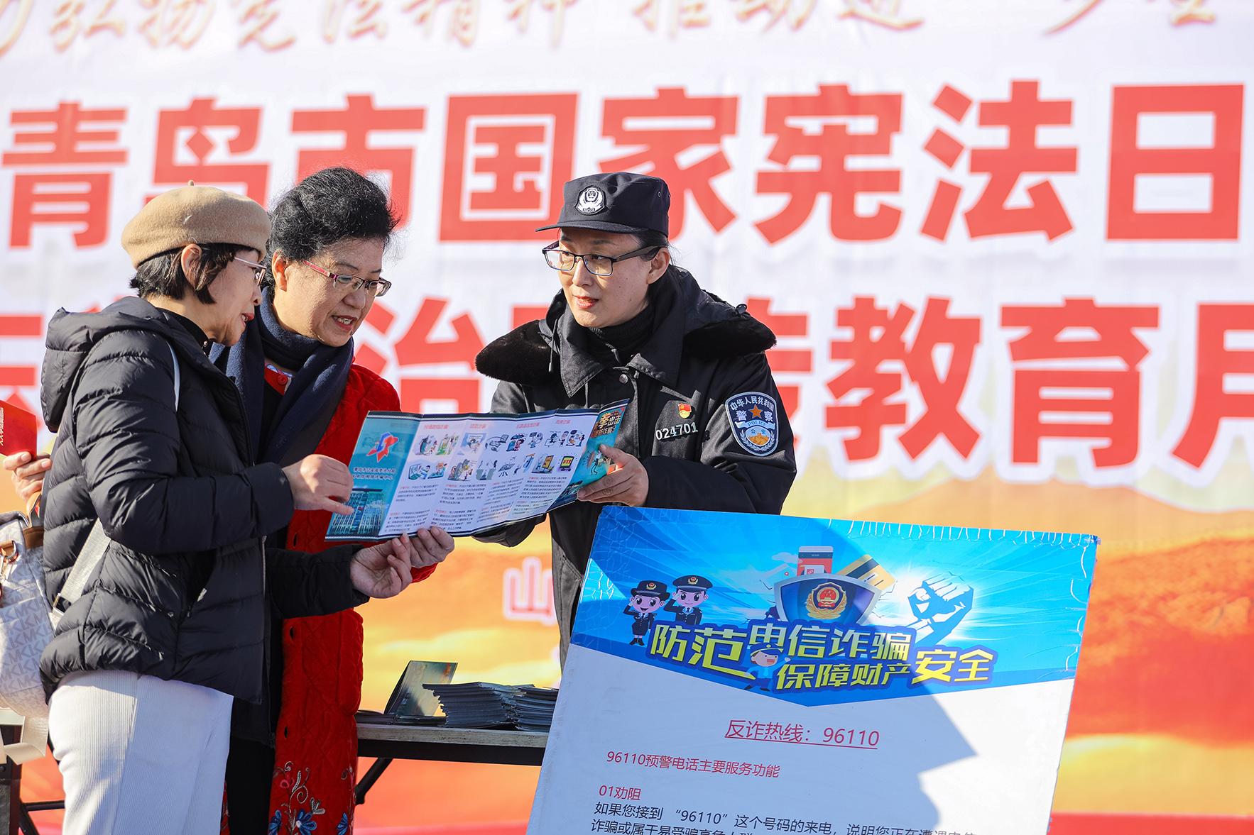 12月3日,山東省青島市李滄區(qū)司法、檢察、公安、稅務(wù)等10個(gè)部門(mén),在工人文化宮開(kāi)展憲法宣傳活動(dòng)。