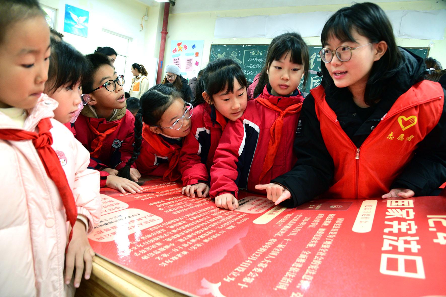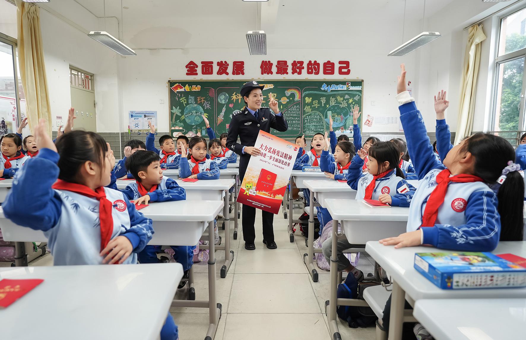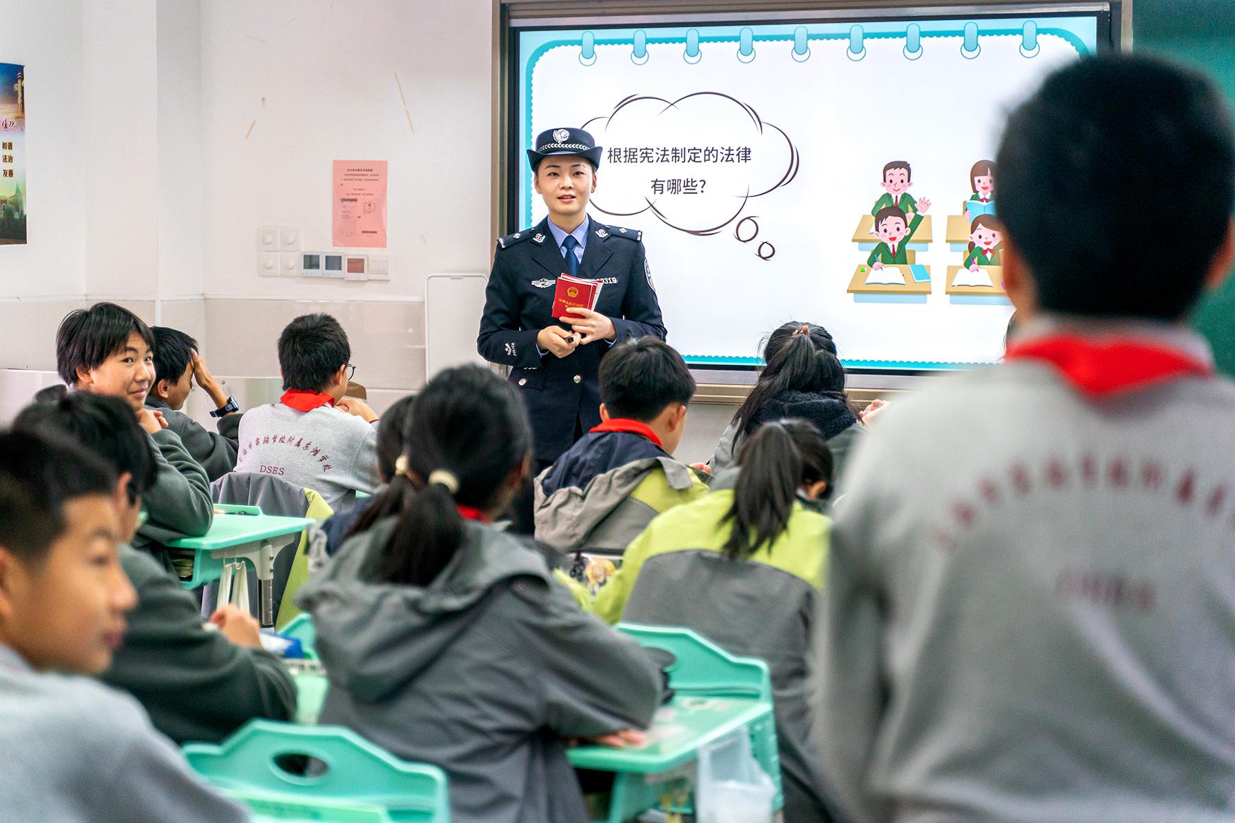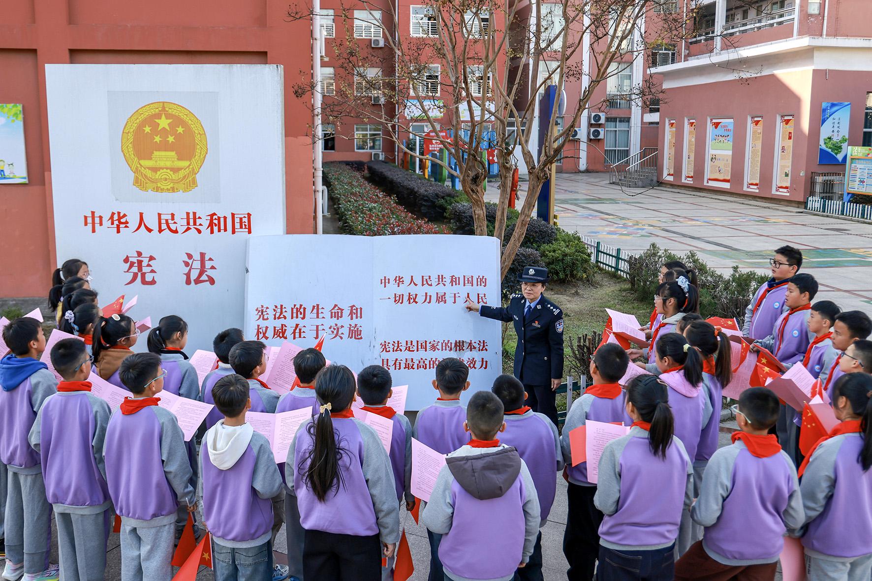 12月2日,安徽省廣德市公安局升平派出所社區(qū)民警來(lái)到桃州鎮(zhèn)第四小學(xué)為學(xué)生輔導(dǎo)學(xué)習(xí)憲法知識(shí)。