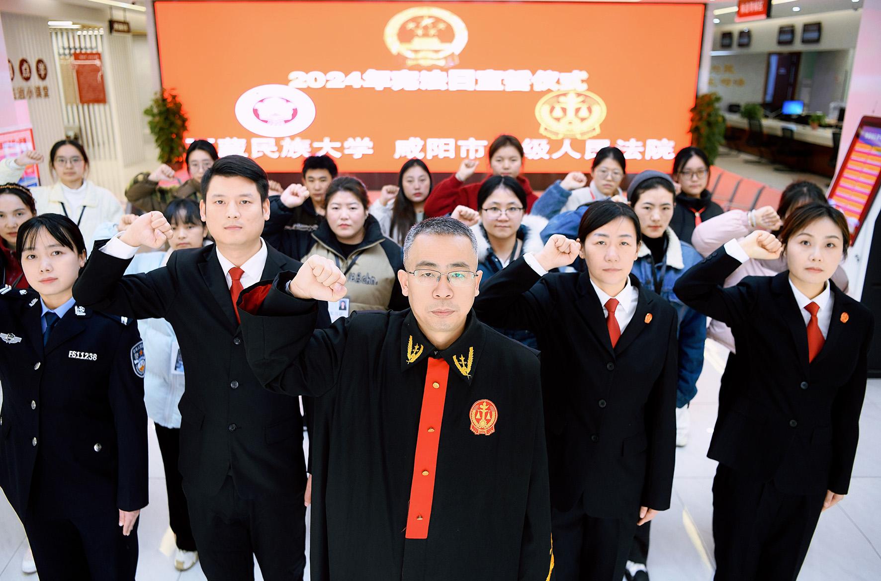 12月2日,陜西省咸陽(yáng)市中級(jí)人民法院未成年人案件審判庭組織干警、實(shí)習(xí)生開(kāi)展以“大力弘揚(yáng)憲法精神 推動(dòng)進(jìn)一步全面深化改革”為主題的憲法宣傳周宣誓活動(dòng)。