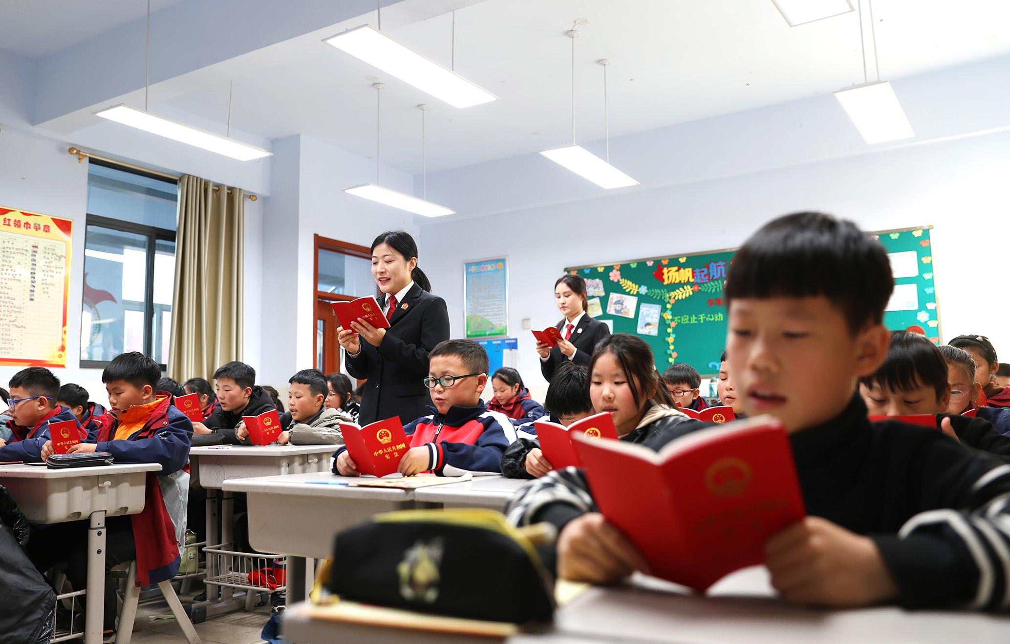 12月2日,山東省臨沭縣人民法院法官助理走進(jìn)青云鎮(zhèn)中心小學(xué),開(kāi)展“法護(hù)青禾 與‘憲’同行”普法宣傳活動(dòng),普及憲法知識(shí),弘揚(yáng)憲法精神。