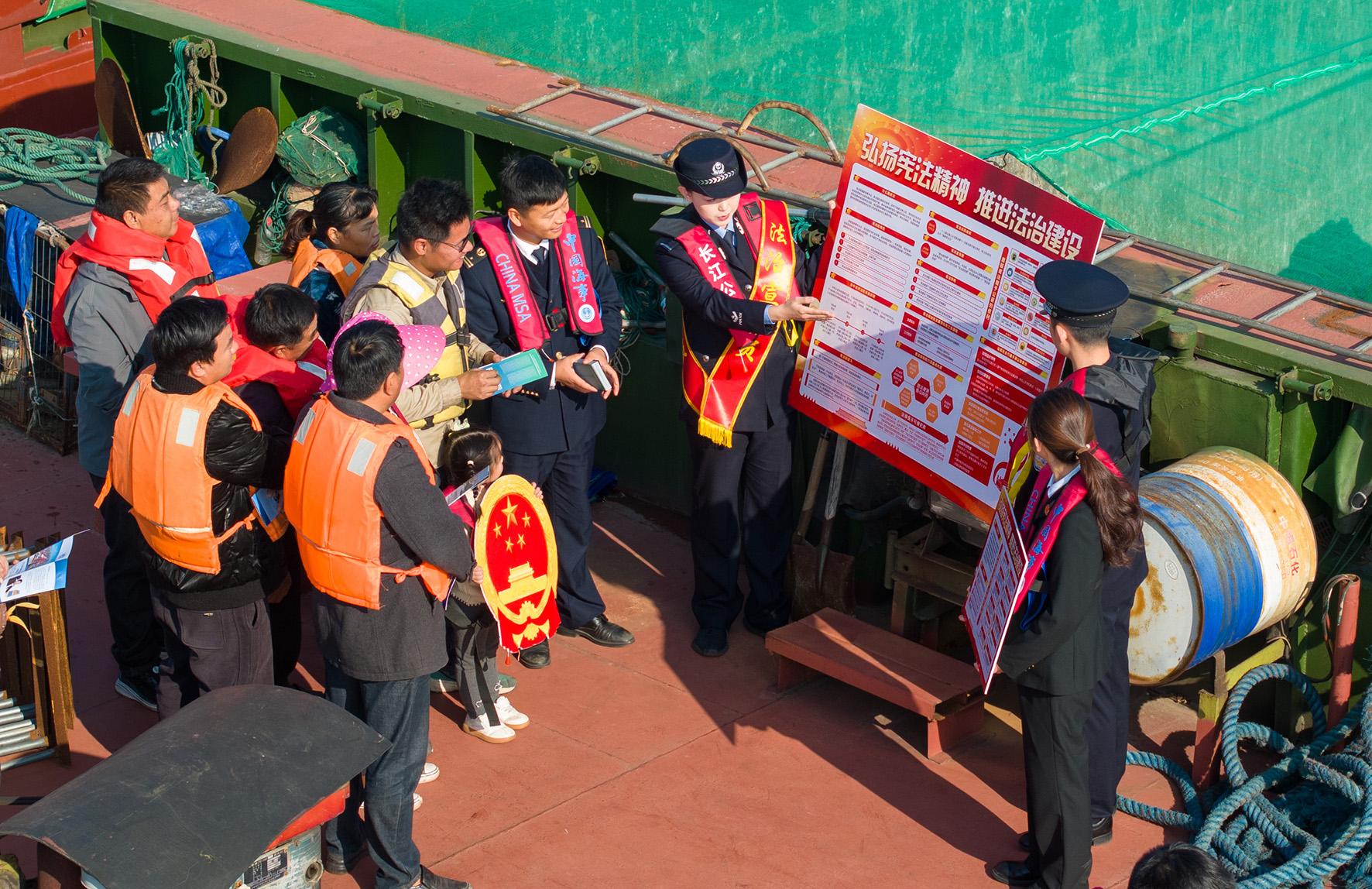 12月2日,長(zhǎng)江航運(yùn)公安局鎮(zhèn)江分局鎮(zhèn)江派出所聯(lián)合海事、法院等江蘇省鎮(zhèn)江市船員法律援助站成員單位,在長(zhǎng)江江蘇鎮(zhèn)江段開(kāi)展憲法上船頭活動(dòng)。