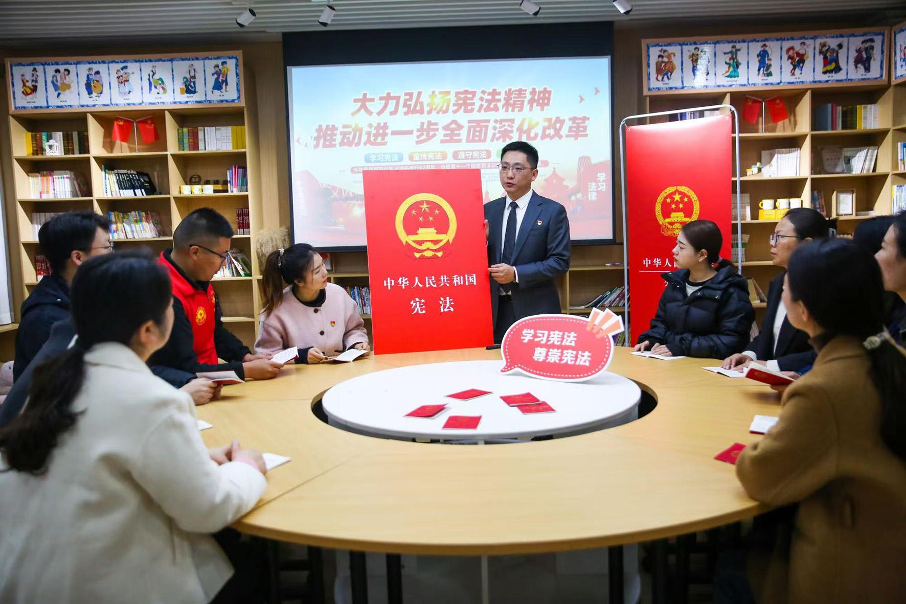 12月3日,山東省棗莊市市中區(qū)人民法院開(kāi)展以“大力弘揚(yáng)憲法精神 推動(dòng)進(jìn)一步全面深化改革”為主題的宣傳活動(dòng),兩名法官通過(guò)線上直播方式向觀眾宣傳憲法知識(shí)。