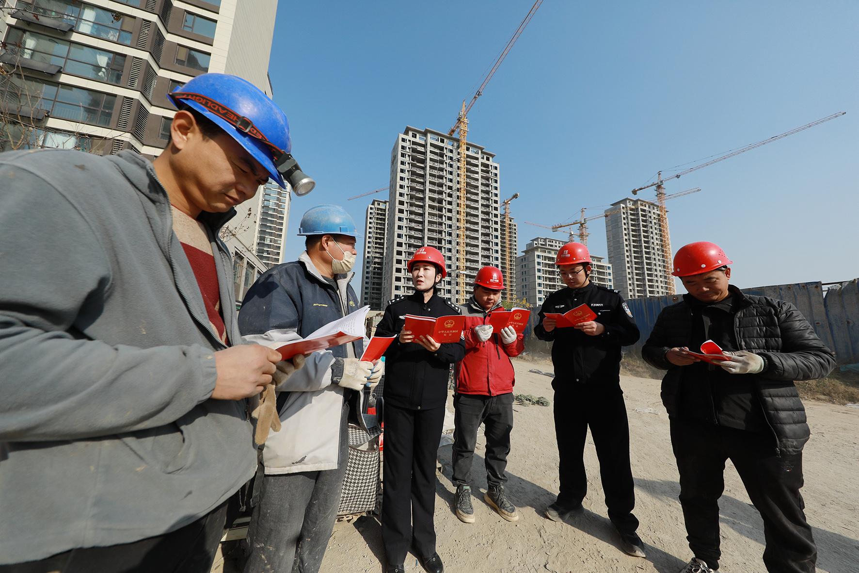 12月2日,山東省菏澤市曹縣公安局青菏派出所民警來(lái)到轄區(qū)建筑工地開(kāi)展憲法宣傳活動(dòng)。
