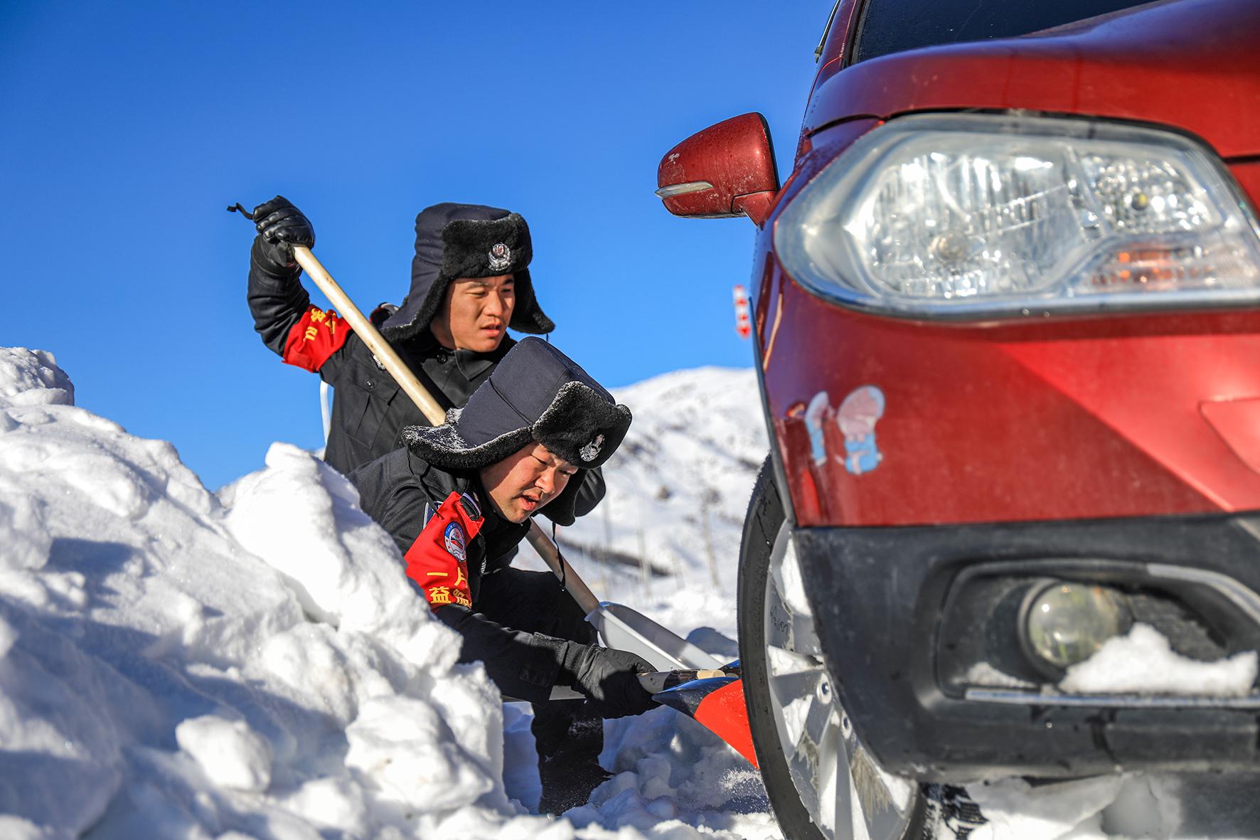 12月5日12時(shí)許,新疆出入境邊防檢查總站阿勒泰邊境管理支隊(duì)庫衛(wèi)邊境派出所接到群眾求助稱車輛因積雪滑下路基被困。接到求助警情后,巡邏警力第一時(shí)間趕赴現(xiàn)場(chǎng),通過清挖積雪和警車牽引的方式,成功將被困人員和車輛救出。