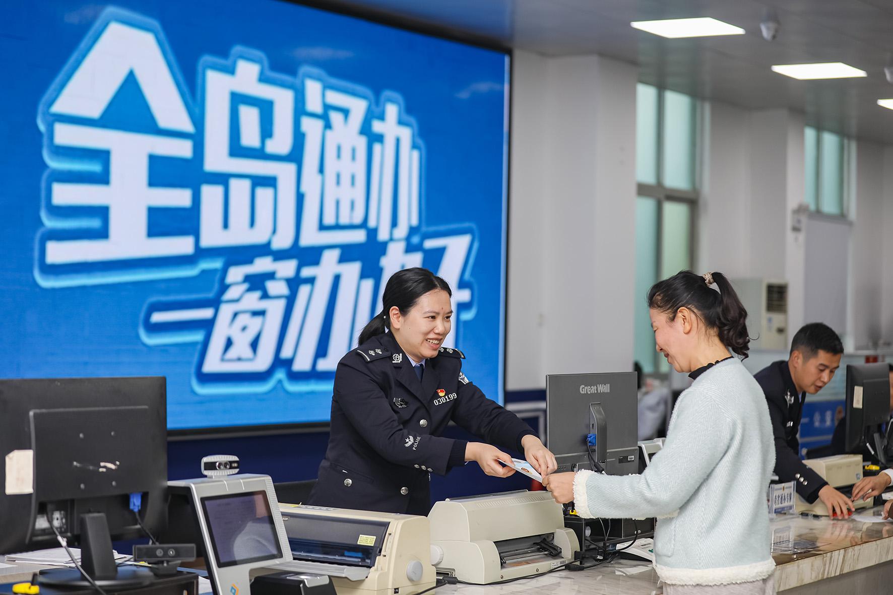 圖為1月6日,平潭綜合實(shí)驗(yàn)區(qū)公安局海壇服務(wù)中心民警正在給群眾辦理戶政業(yè)務(wù)。