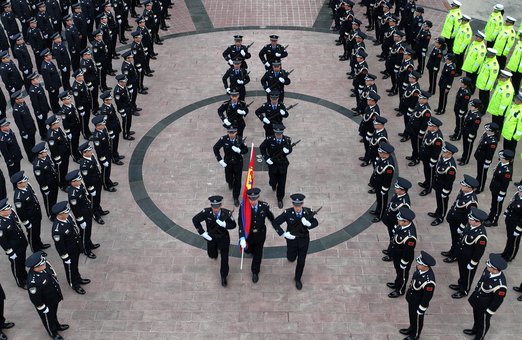 1月10日,甘肅隴南禮縣公安局舉行慶祝第五個中國人民警察節(jié)升警旗儀式,重溫入警誓詞,進(jìn)一步增強民警的職業(yè)榮譽感、自豪感和責(zé)任感。