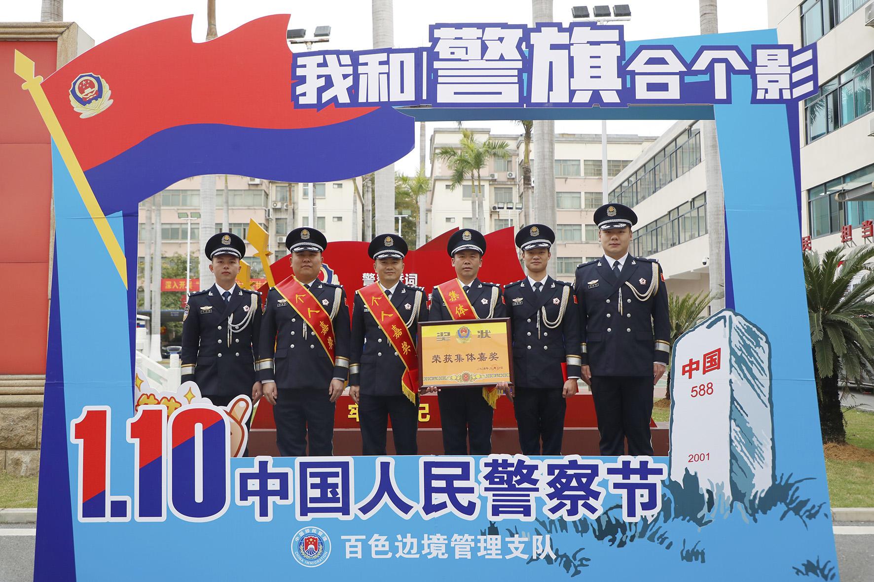 1月10日,廣西百色邊境管理支隊舉行警察節(jié)榮譽儀式,為立功受獎的3個集體、18名民警、晉升警銜的46名民警代表頒發(fā)獎?wù)隆⒆C書。