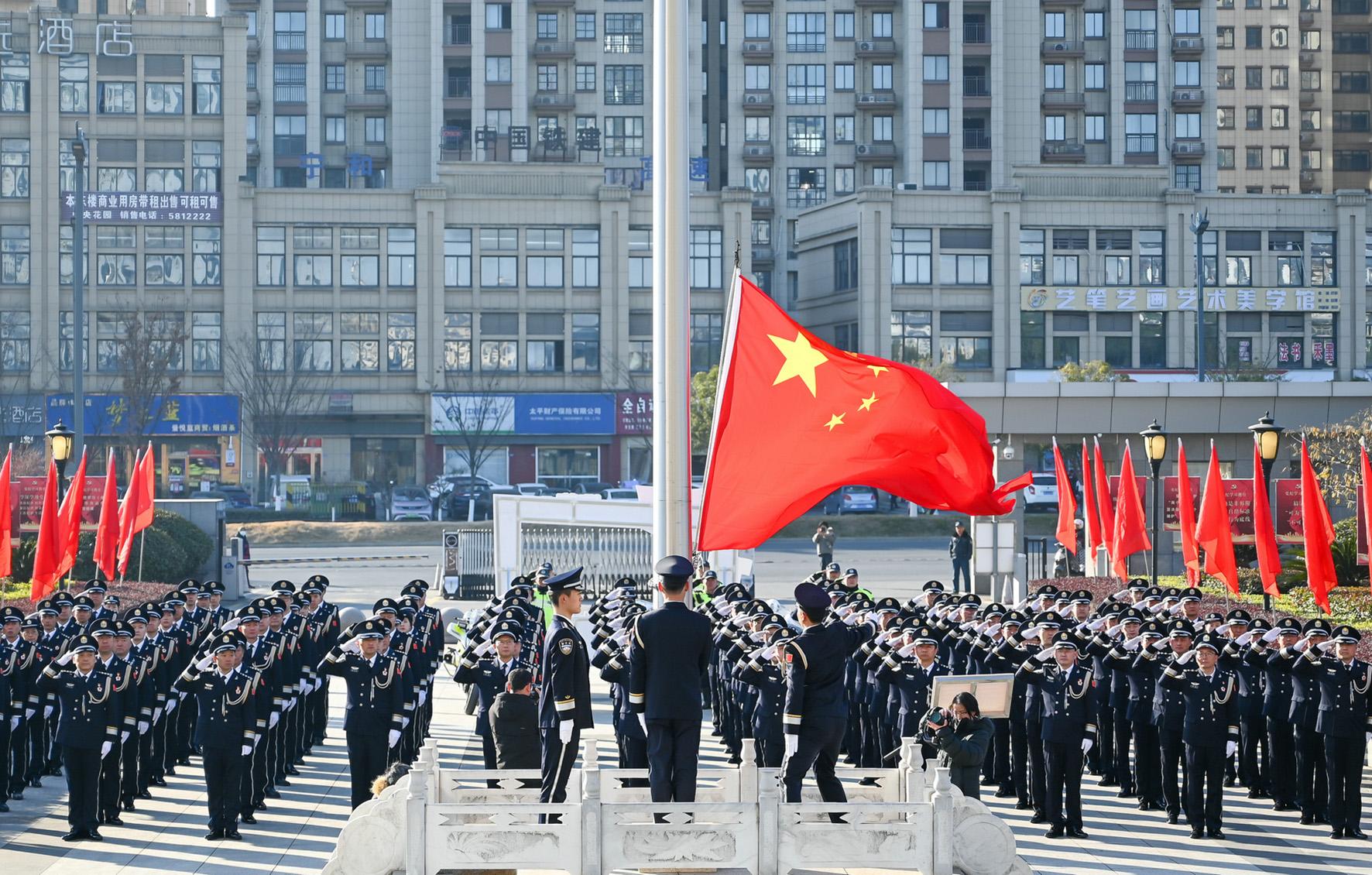 1月10日,第五個中國人民警察節(jié)。安徽省馬鞍山市和縣公安局組織開展了“升國旗 迎警旗 立警誓”活動。