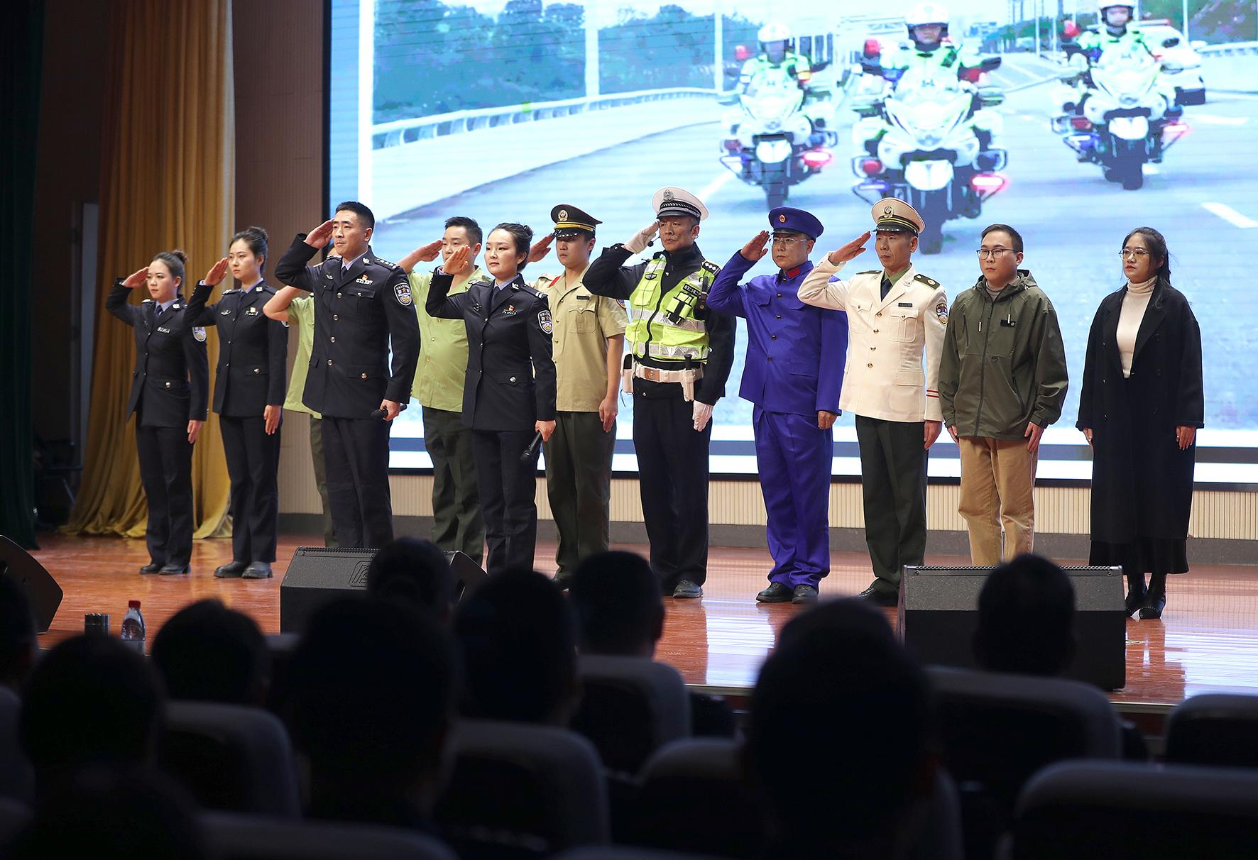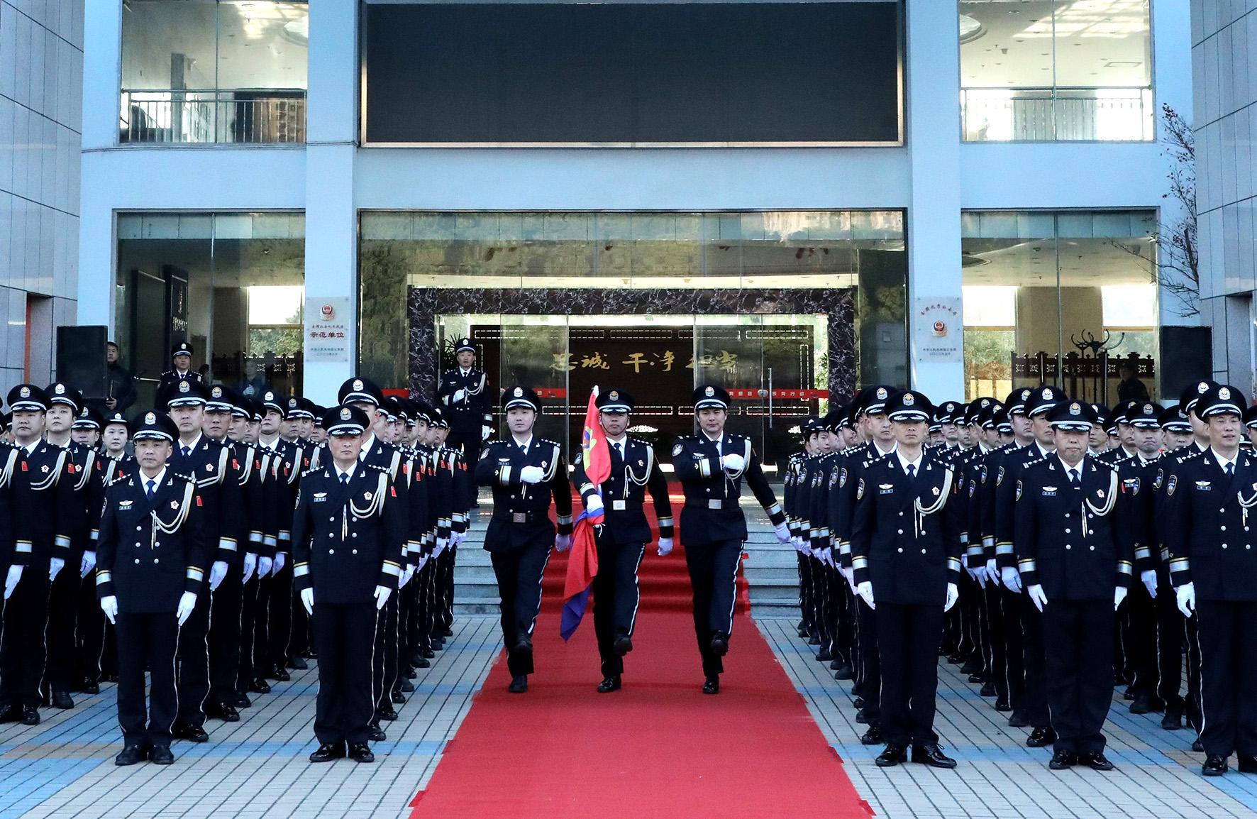 1月10日,貴州省赤水市公安局組織黨員民輔警舉行“奏警歌、升警旗暨公安機關(guān)人民警察誓詞宣誓儀式”活動,慶祝第五個中國人民警察節(jié)。