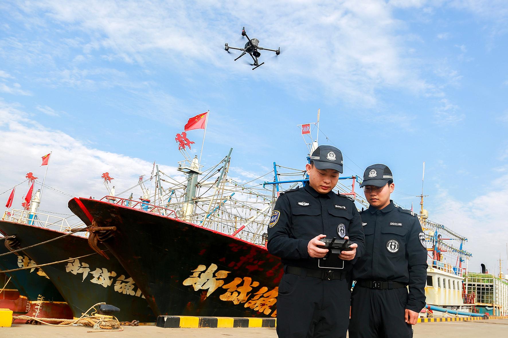 1月15日,浙江省岱山縣公安局巡特警大隊“魚鷹”戰(zhàn)隊民警輔警,結(jié)合“冬季行動”,利用警用無人機對轄區(qū)漁港碼頭進行空中巡查,加強轄區(qū)海上治安防控工作力度,守護漁船民安全生產(chǎn)。