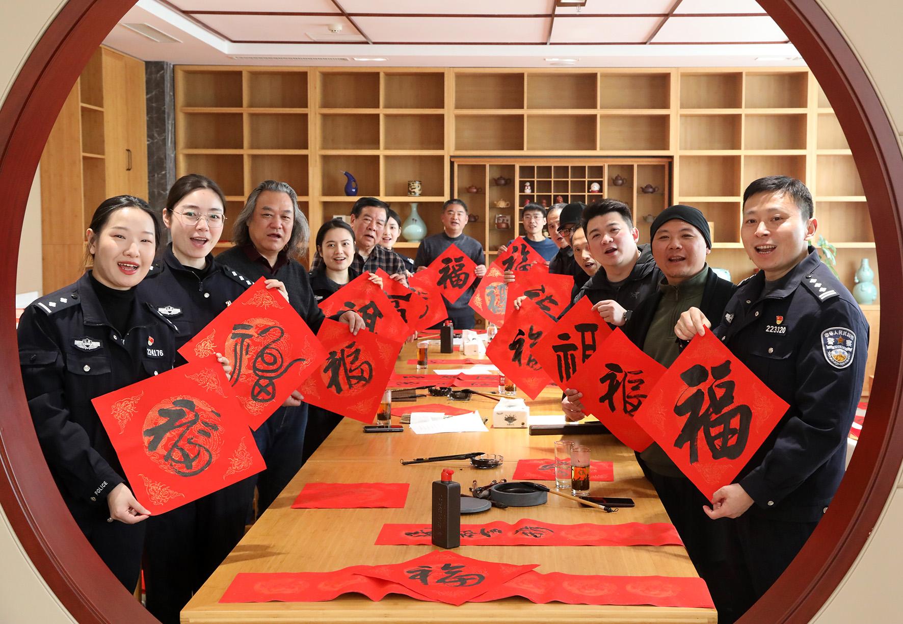 為弘揚中華優(yōu)秀傳統(tǒng)文化,豐富警營文化生活,1月21日,江蘇省宜興市公安局丁山派出所開展“妙筆迎新春 潑墨送祝?!毙麓簳疫M警營活動。
