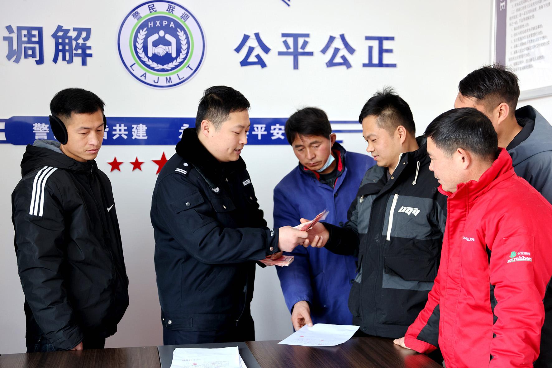 近日,56名農(nóng)民工帶著笑容來到安徽省亳州市公安局高新區(qū)分局,領取某公司拖欠他們的工資。自該欠薪案立案之日始,高新公安分局僅用不到一個月的時間將某公司拖欠的386180元工資全部發(fā)到農(nóng)民工手中,讓農(nóng)民工安“薪”過年。