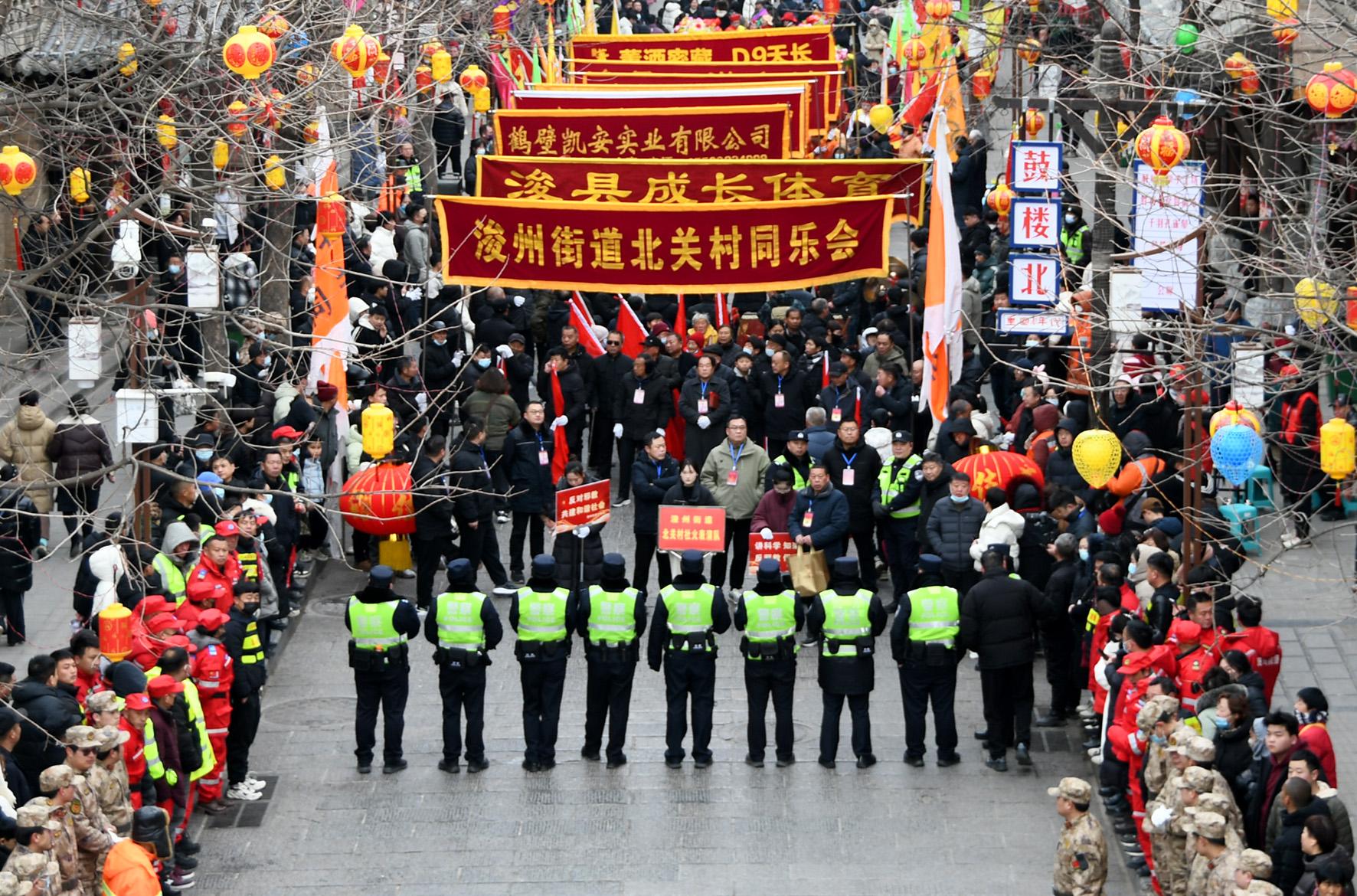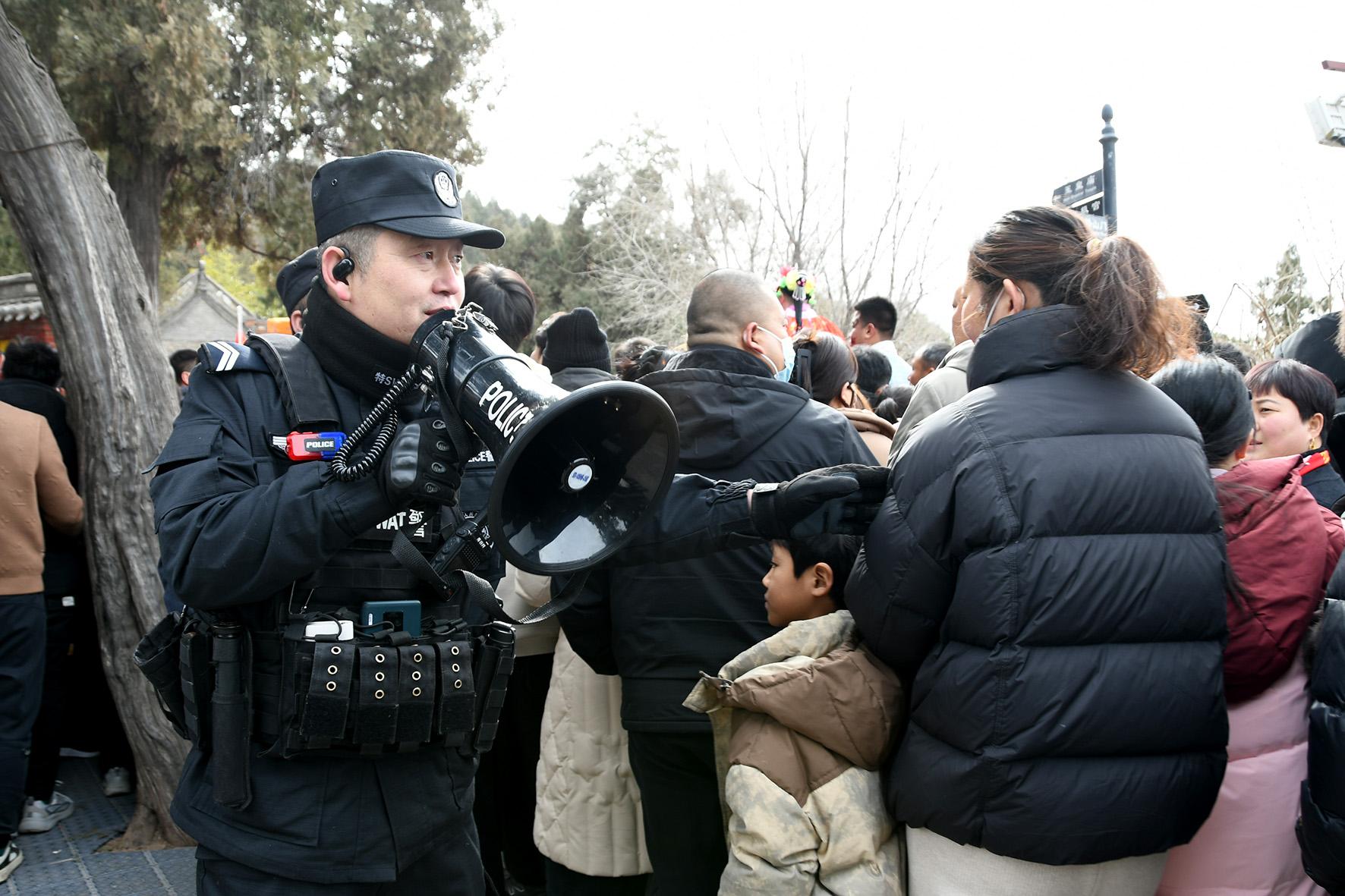 2月6日,河南省浚縣公安局民警輔警在正月古廟會(huì)現(xiàn)場執(zhí)勤。