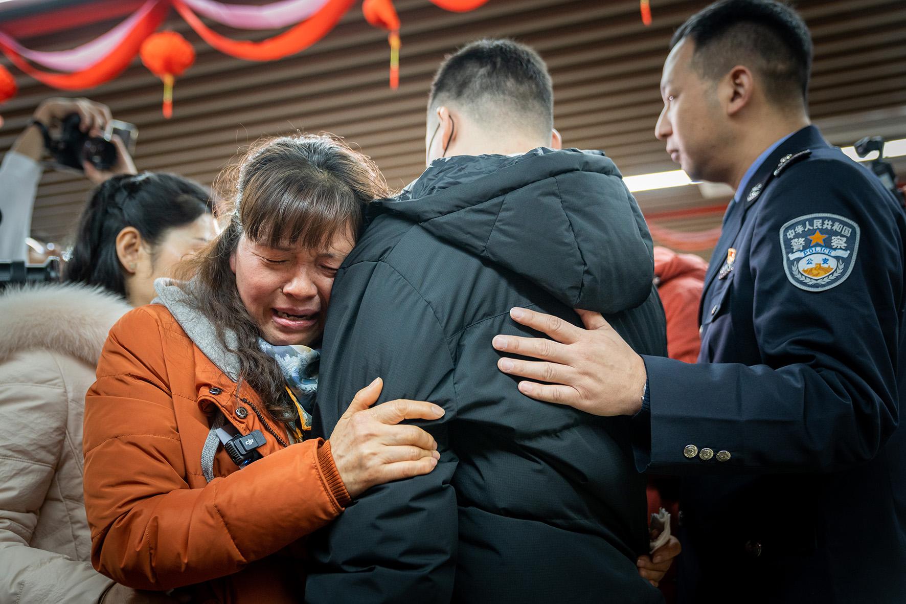 2月20日上午,四川省綿陽市公安局舉行的失蹤被拐兒童認親活動現(xiàn)場,家住南充市南部縣的雷春蘭終于與日思夜想32年的兒子緊緊相擁在一起。團聚后的一家人,對公安機關(guān)幫助連連致謝。