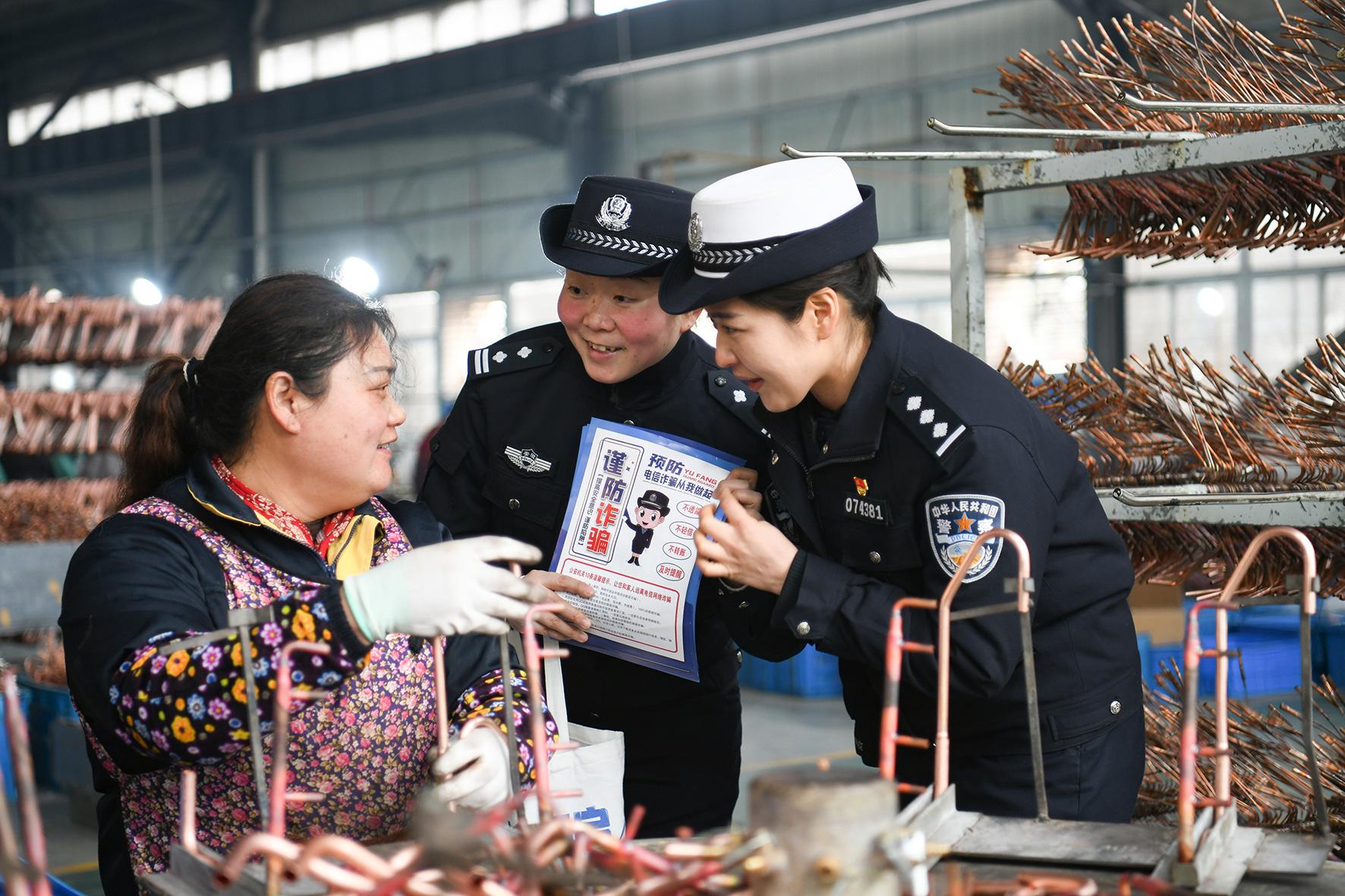 2月26日,安徽省馬鞍山市含山縣公安局組織“普法小分隊(duì)”走進(jìn)轄區(qū)企業(yè),向企業(yè)員工宣傳防范電信網(wǎng)絡(luò)詐騙、道路交通安全等知識(shí)。