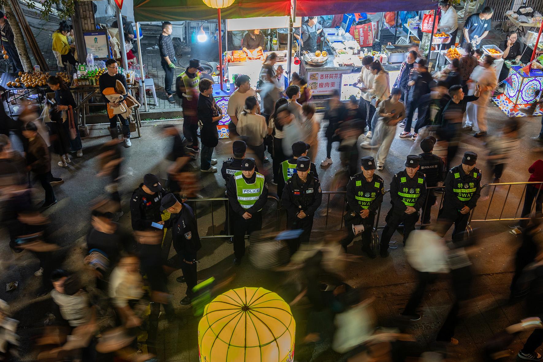 3月2日夜晚,浙江省臺(tái)州市黃巖分局民輔警在寧溪鎮(zhèn)“二月二”非遺燈會(huì)活動(dòng)現(xiàn)場(chǎng)執(zhí)勤守護(hù)。