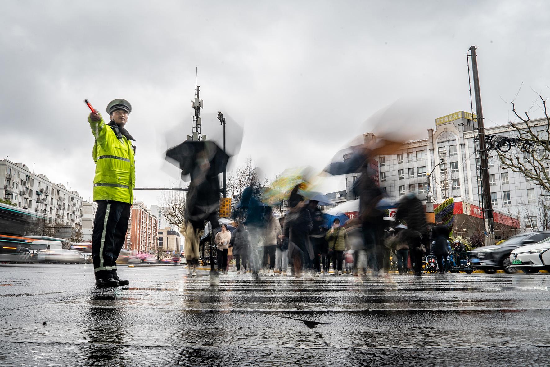 3月3日,上海出現(xiàn)雷雨天氣。為確保市民群眾安全出行,上海市公安局普陀分局交警支隊“一點(diǎn)一方案”優(yōu)化各個重點(diǎn)路口警力部署,全力維護(hù)城市交通秩序。