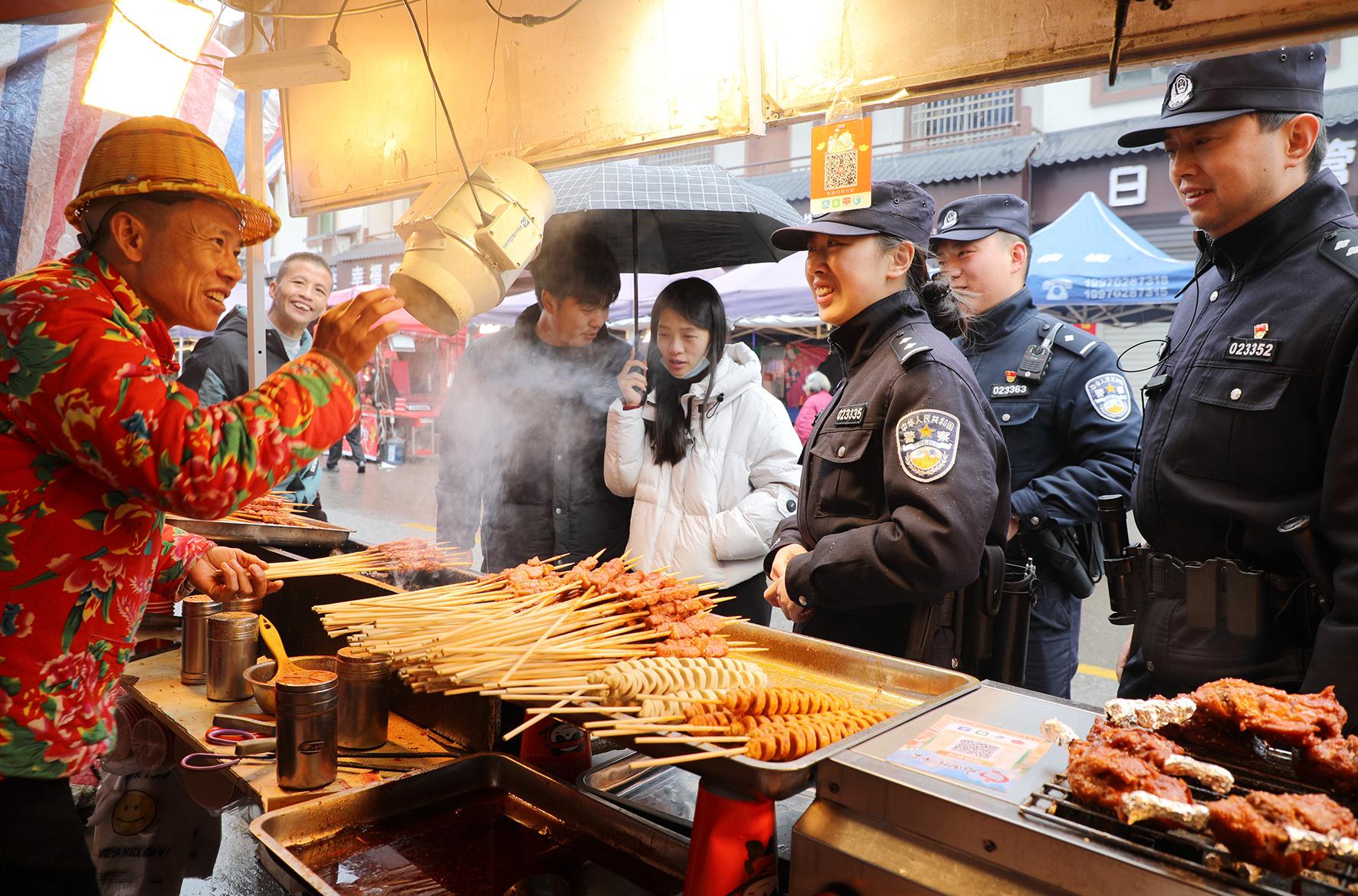 3月3日,江西省九江市柴桑區(qū)公安局民警在馬回嶺鎮(zhèn)一年一度的“百年廟會(huì)”現(xiàn)場巡邏執(zhí)勤。