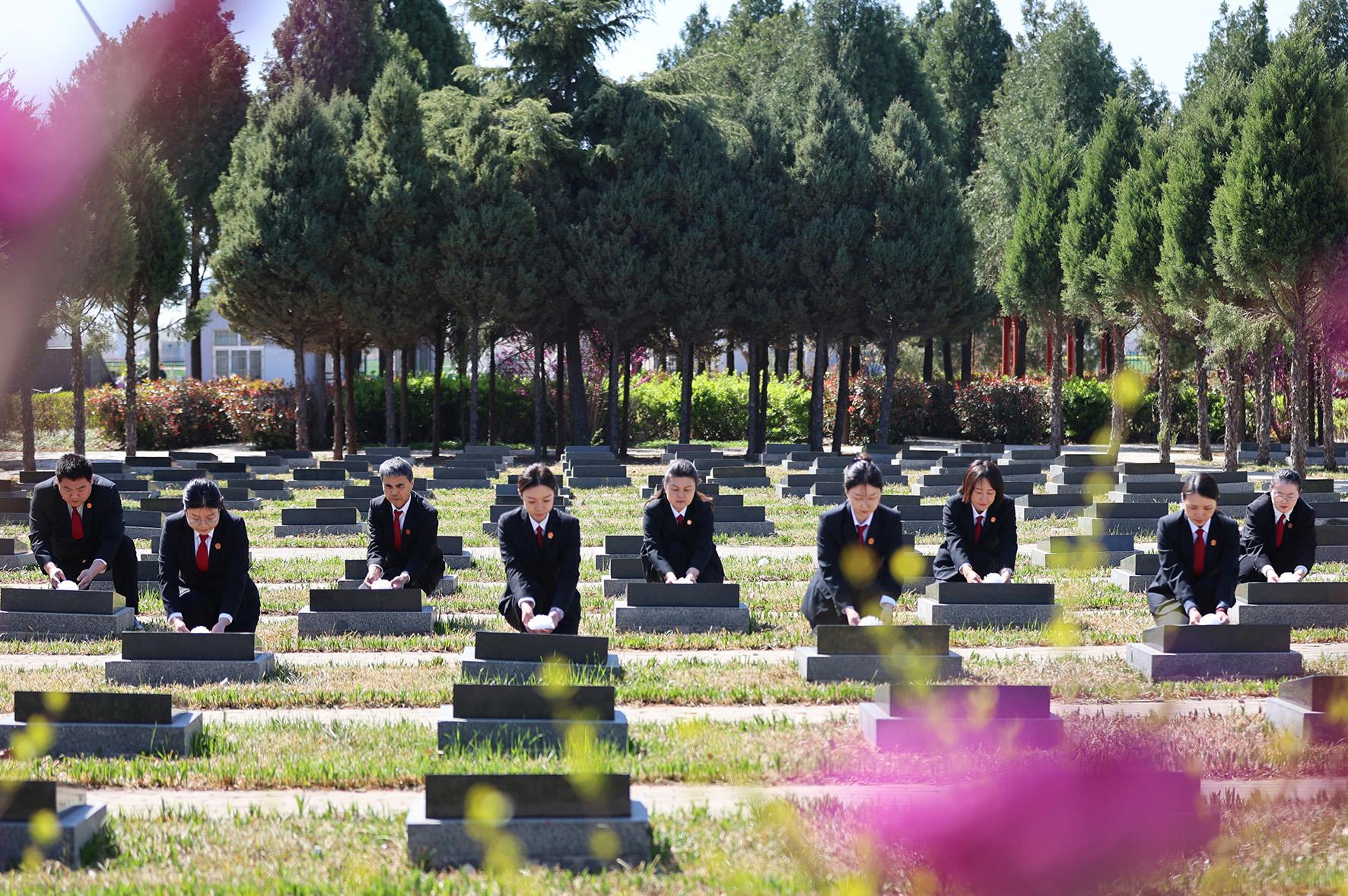 4月2日,河南省安陽縣人民法院組織干警前往安陽縣辛村烈士紀(jì)念園開展清明祭奠活動(dòng)。