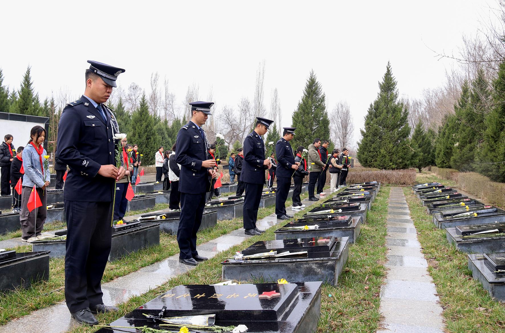4月2日,甘肅省肅南縣公安局組織民輔警來到紅西路軍烈士陵園開展清明祭掃活動(dòng)。