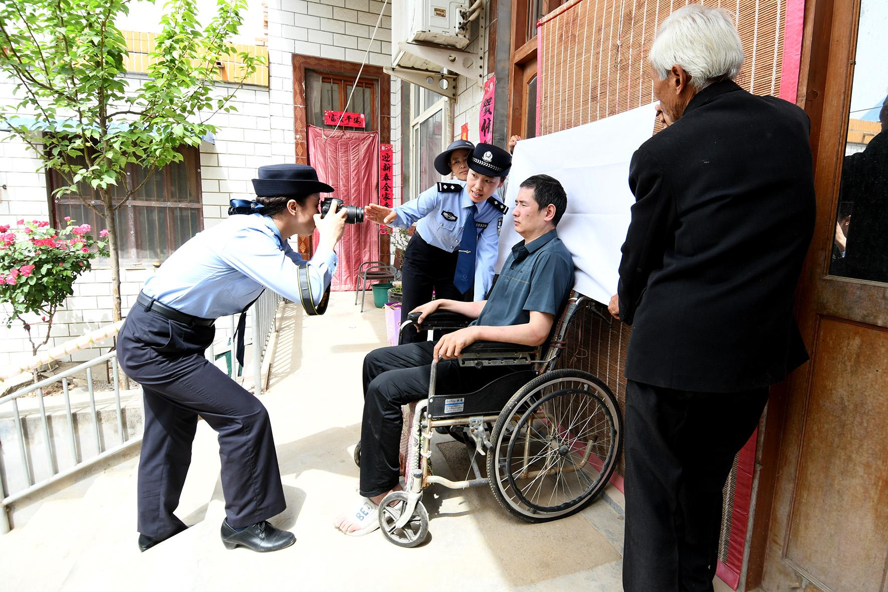 5月7日,河南省浚縣公安局白寺派出所民警來到白寺鎮(zhèn)東許莊村村民直某家,為其患病的兒子辦理身份證。