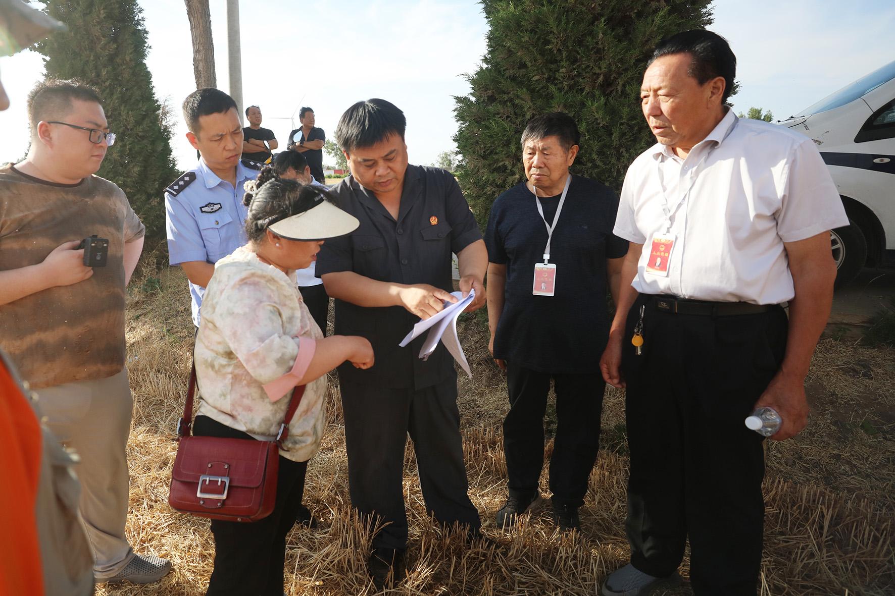 6月3日,河南省安陽縣人民法院執(zhí)行局法官一行來到轄區(qū)北郭鄉(xiāng),對一起親兄弟之間土地承包經(jīng)營權(quán)糾紛案進(jìn)行強(qiáng)制執(zhí)行。在安陽市、縣兩級人大代表現(xiàn)場監(jiān)督見證下,對涉案土地劃定了新的界線,最終案件得到解決。