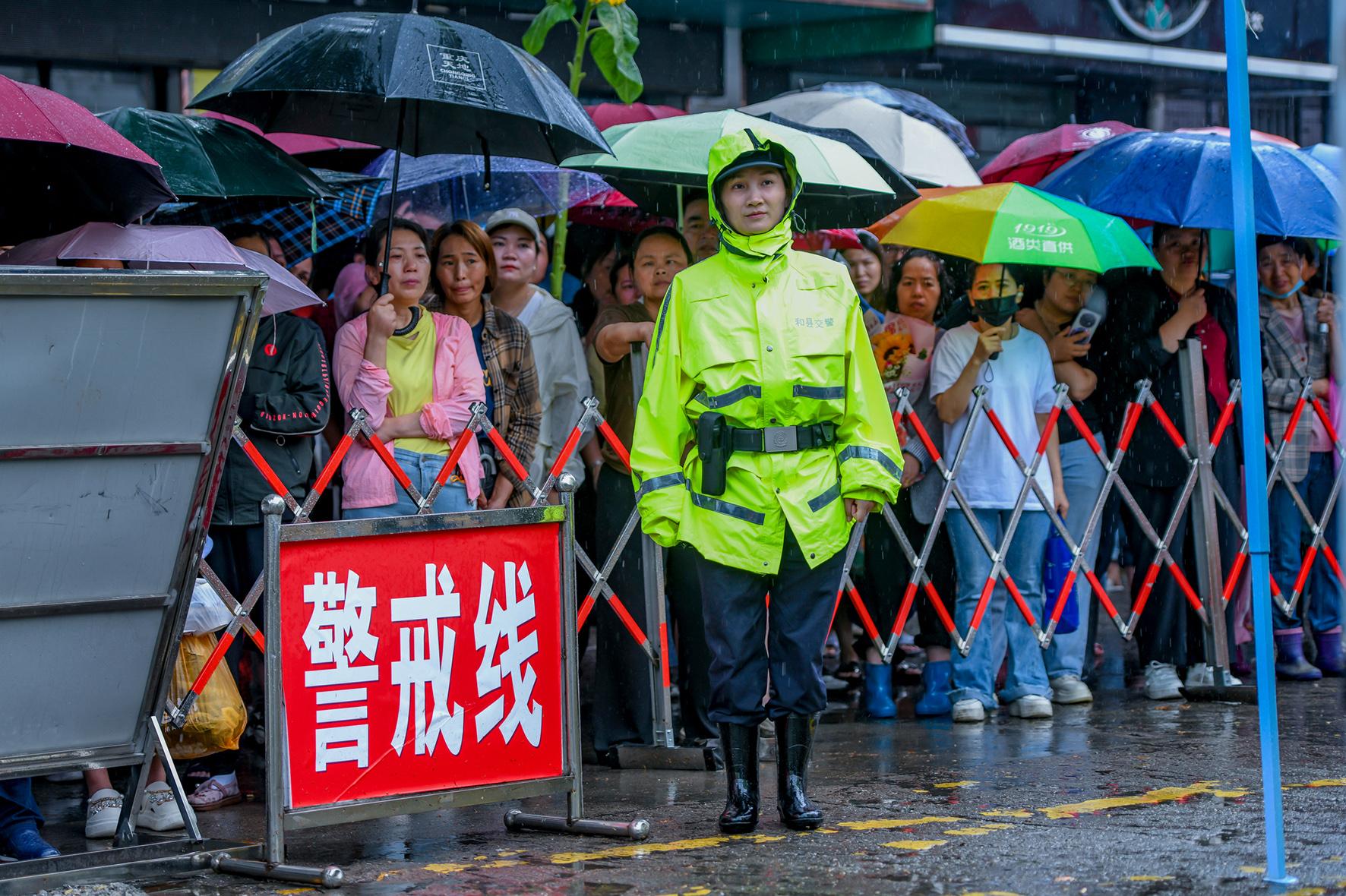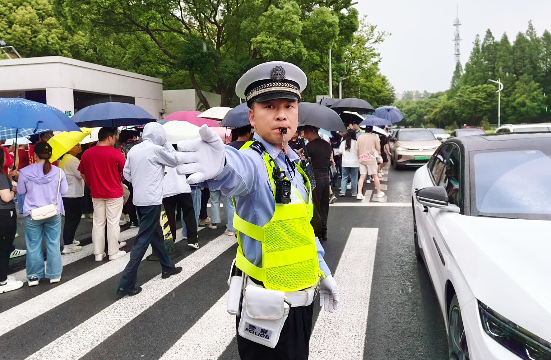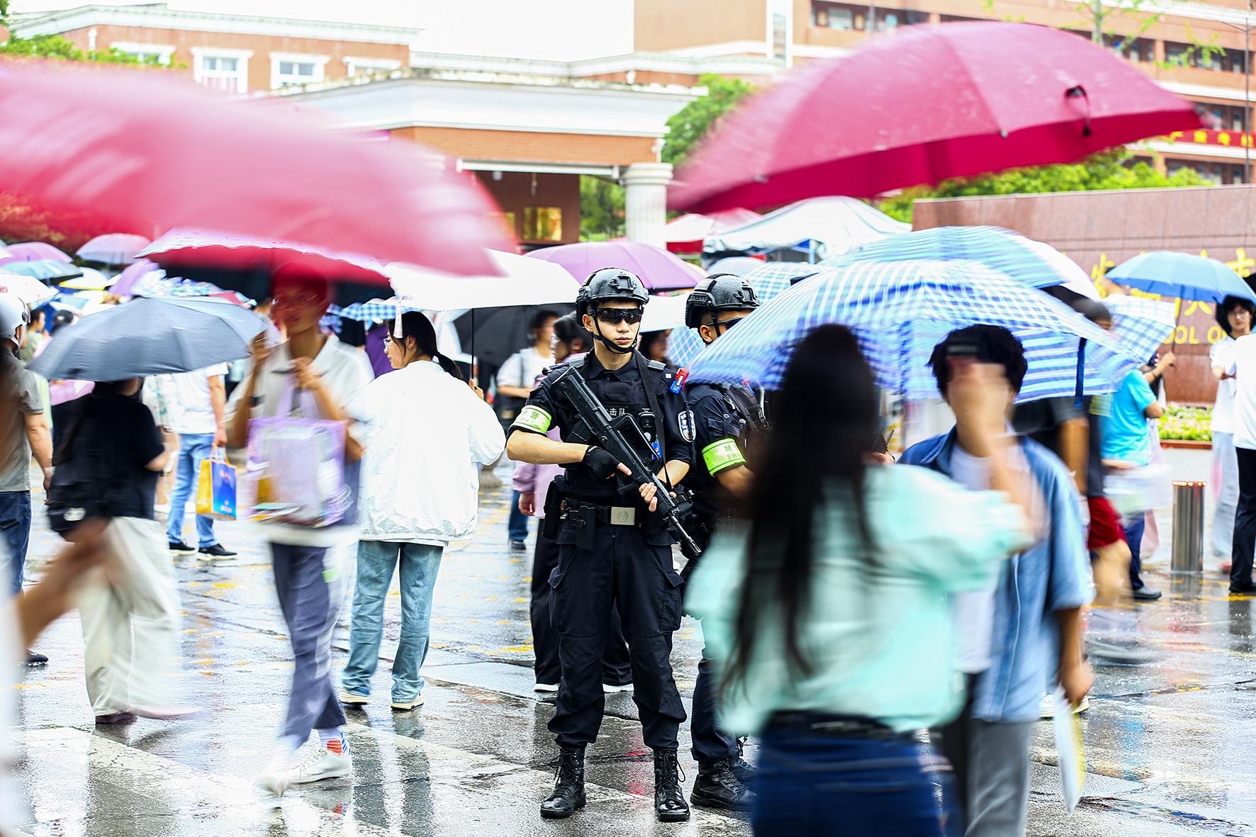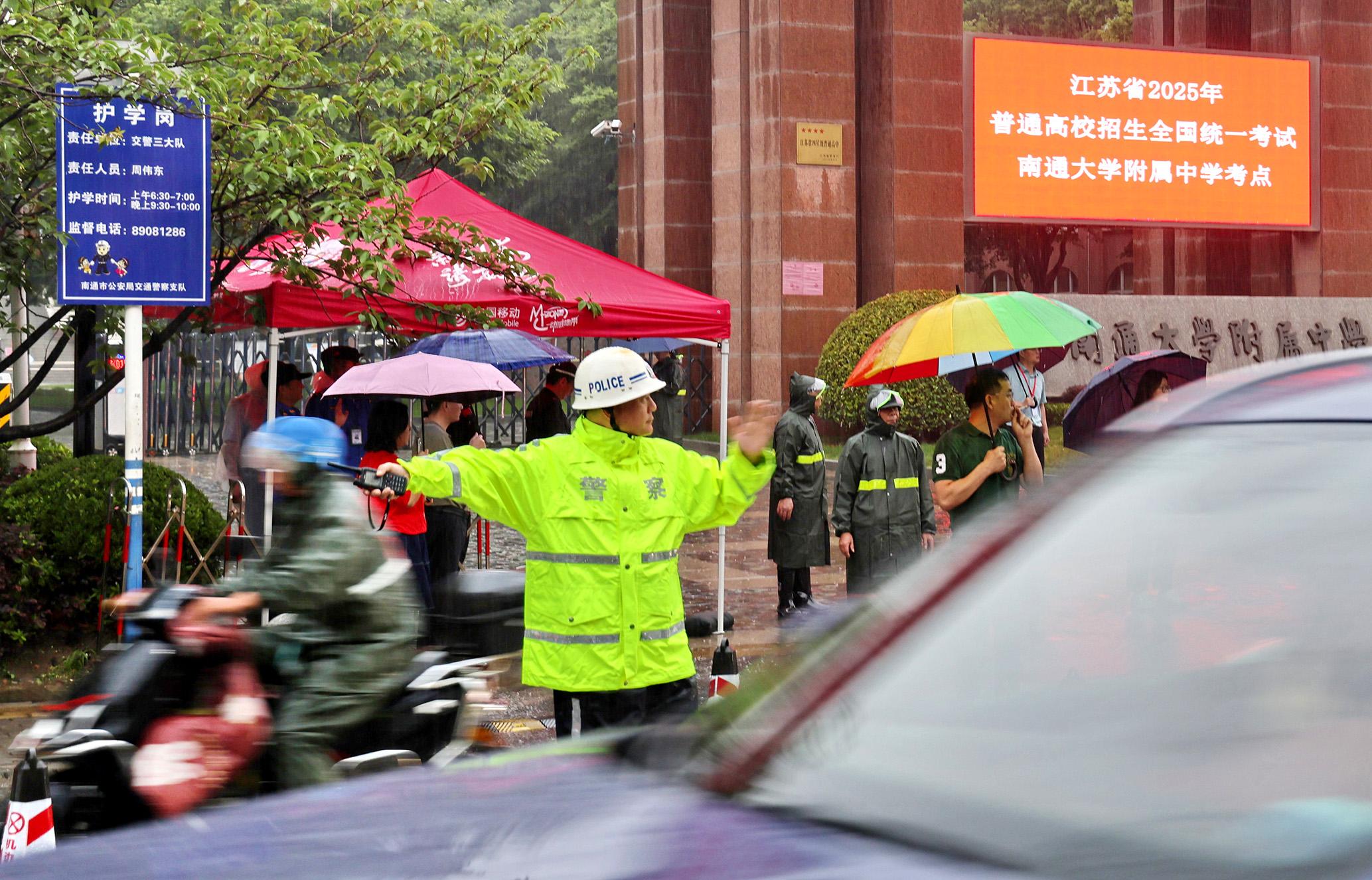 6月7日,江蘇省南通市在雨中迎來高考。南通市公安局民警全警動員,堅守崗位,護航學(xué)子圓夢。